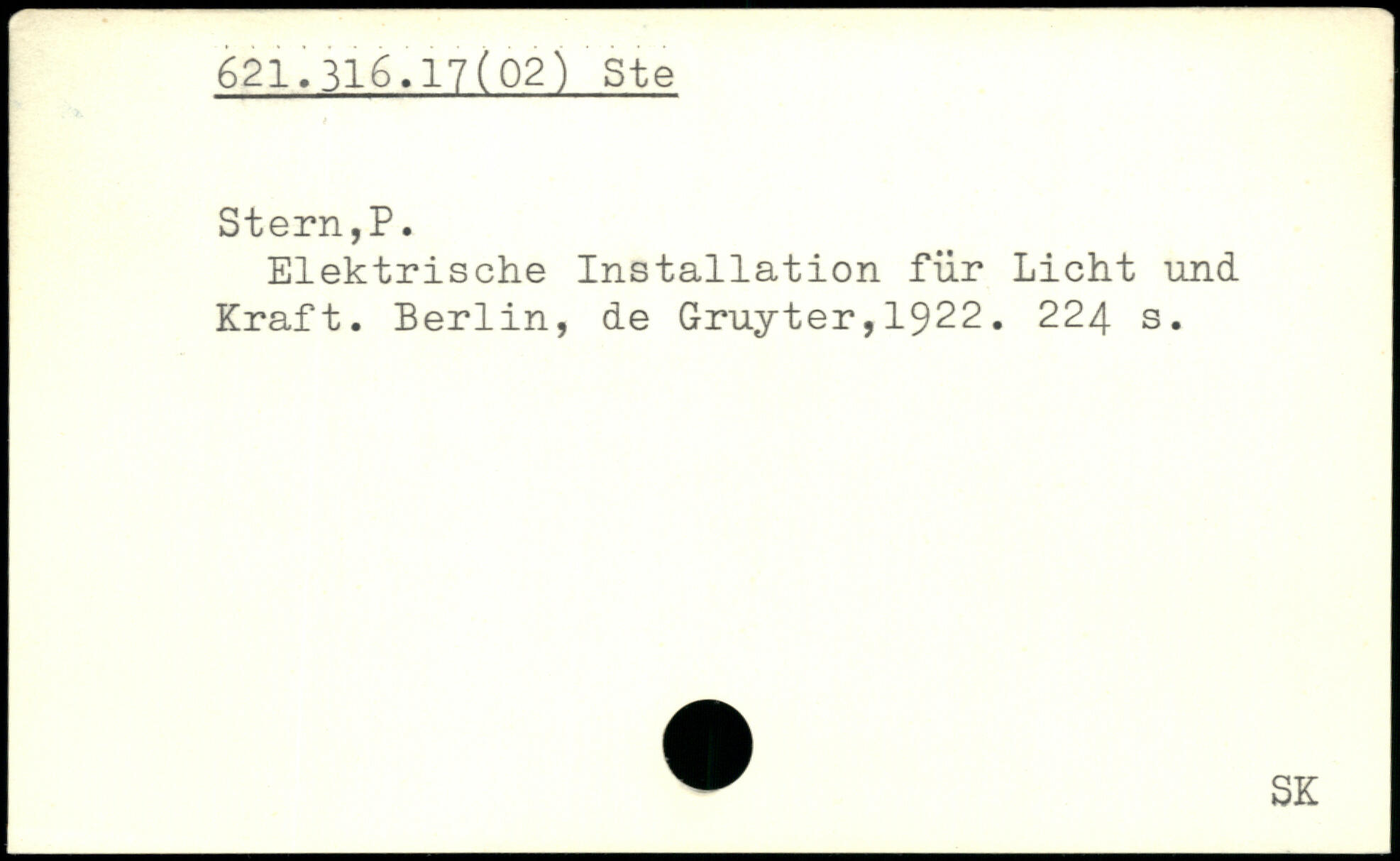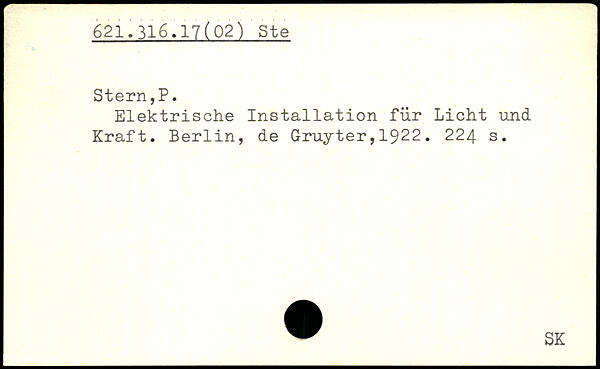 Elektrische Installation für Licht und Kraft. Berlin, de Gruyter,1922.