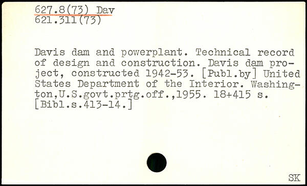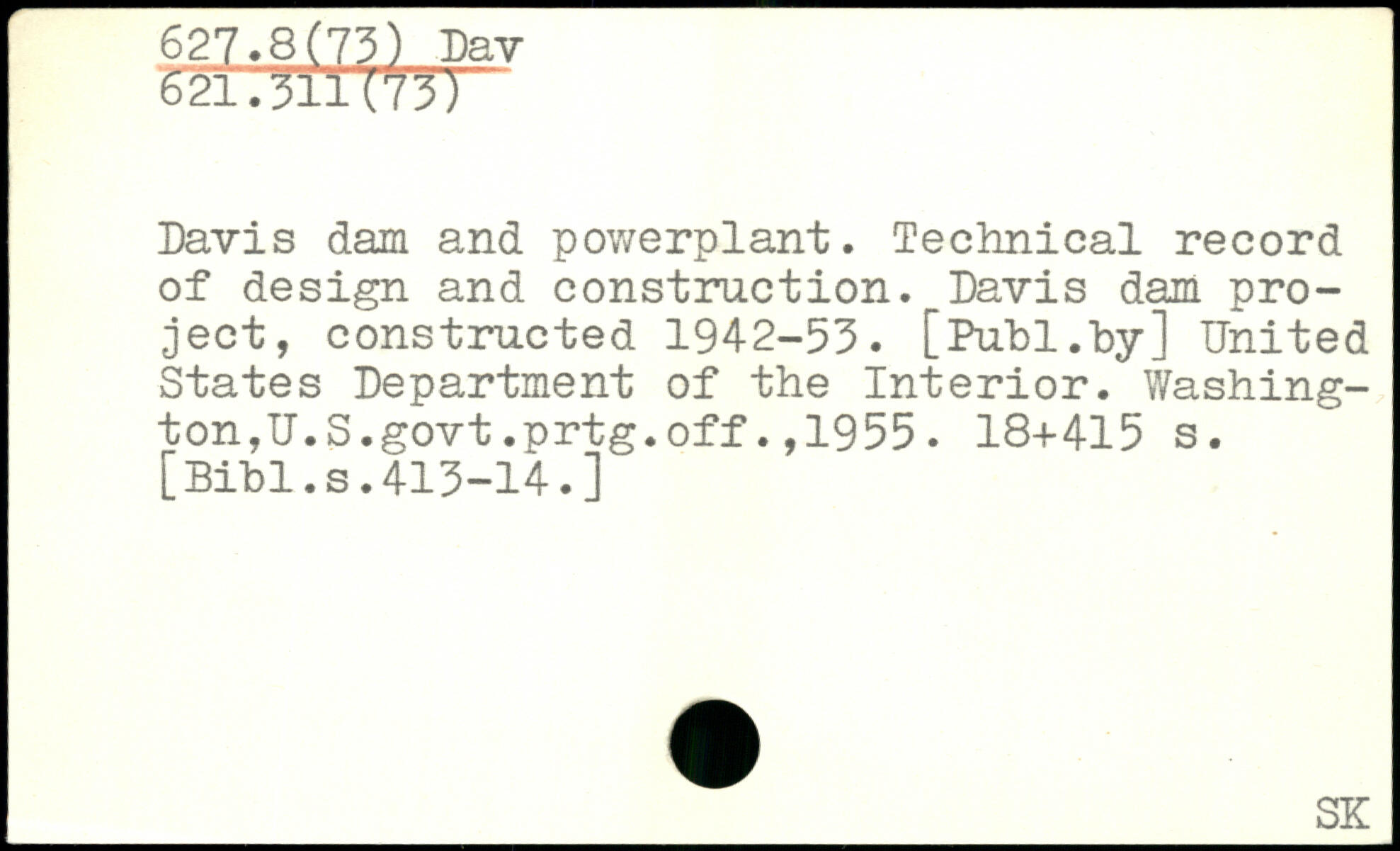 Davis darn and powerplant. Technical record of design and construction. Davis dam project, constructed 1942-53.