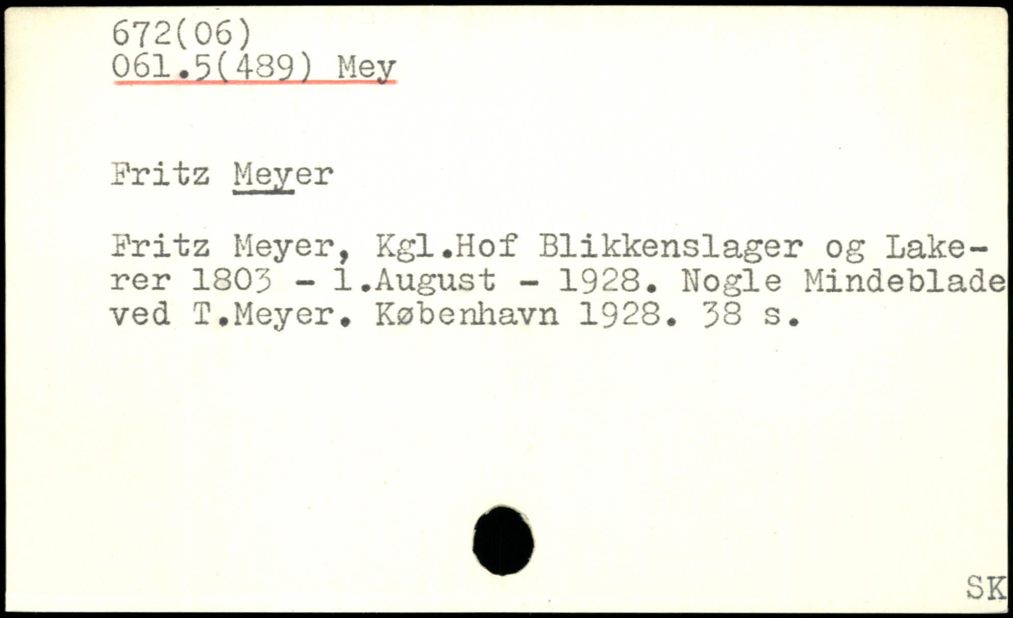 Fritz Meyer, Kgl.Hof Blikkenslager og Lakerer 1803 - 1.August - 1928. Nogle Mindeblade ved T.Meyer.