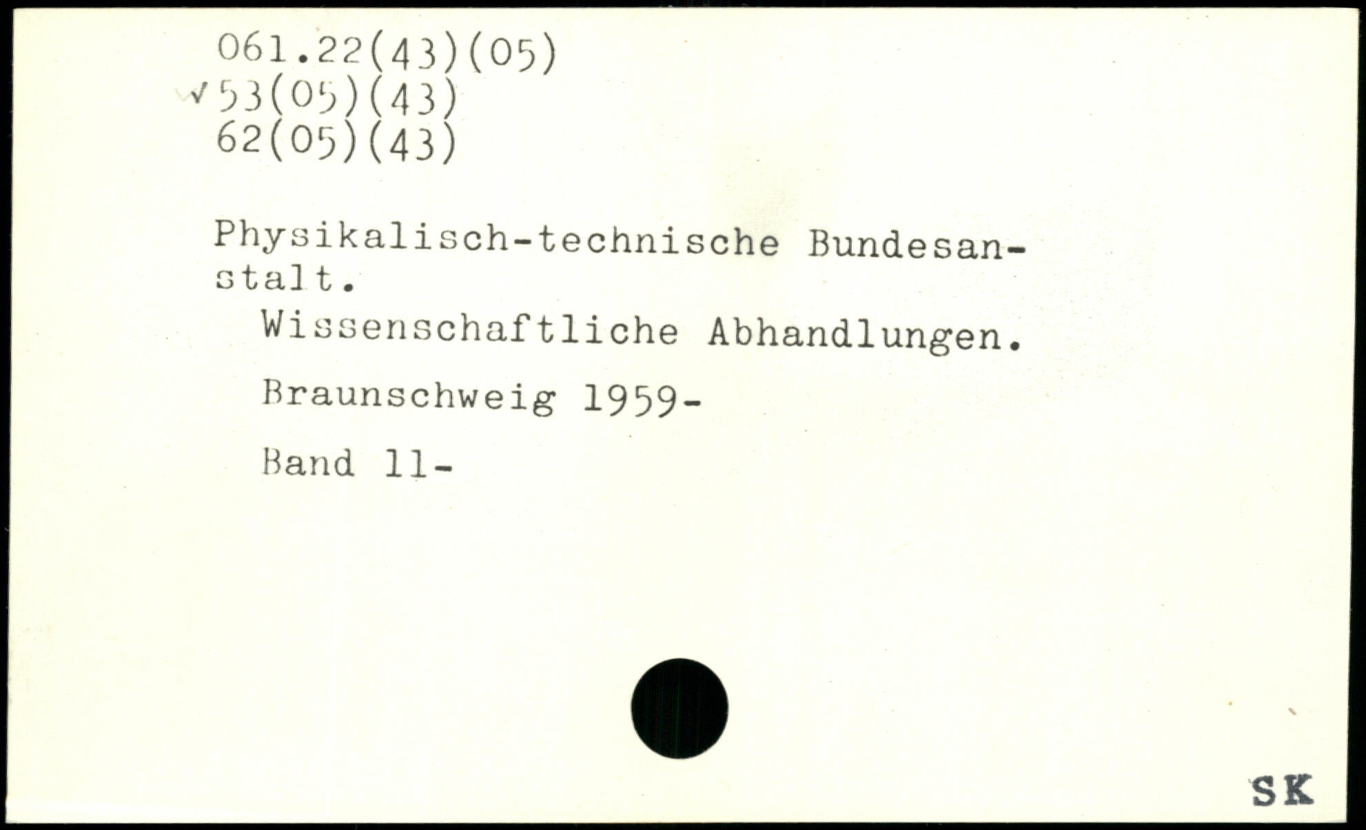 Physikalisch-technische BundeSan-ß t al t. Wissenschaftliche Abhandlungen. Braunschweig 1959-Band 11-