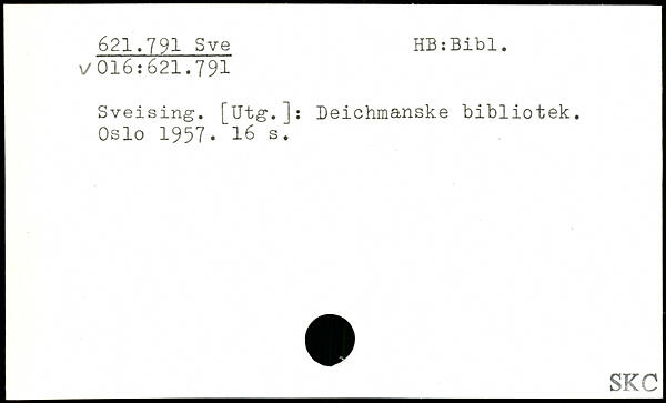 Sveising. [Utg.]: Deichmanske bibliotek. Oslo 1957