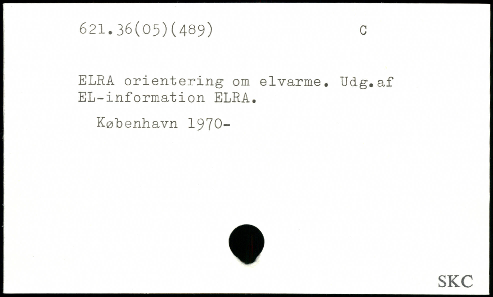 ELRA orientering om elvarme. Udg.af EL-information ELRA.