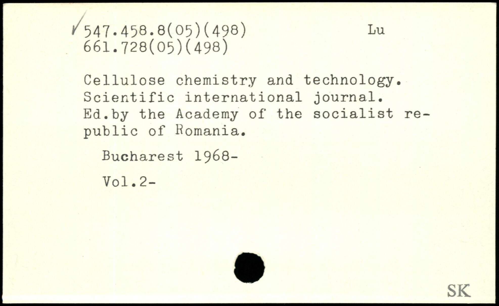 Cellulose chemistry and technology. Scientific international journal. Ed.by the Academy of the socialist republic of Romania.