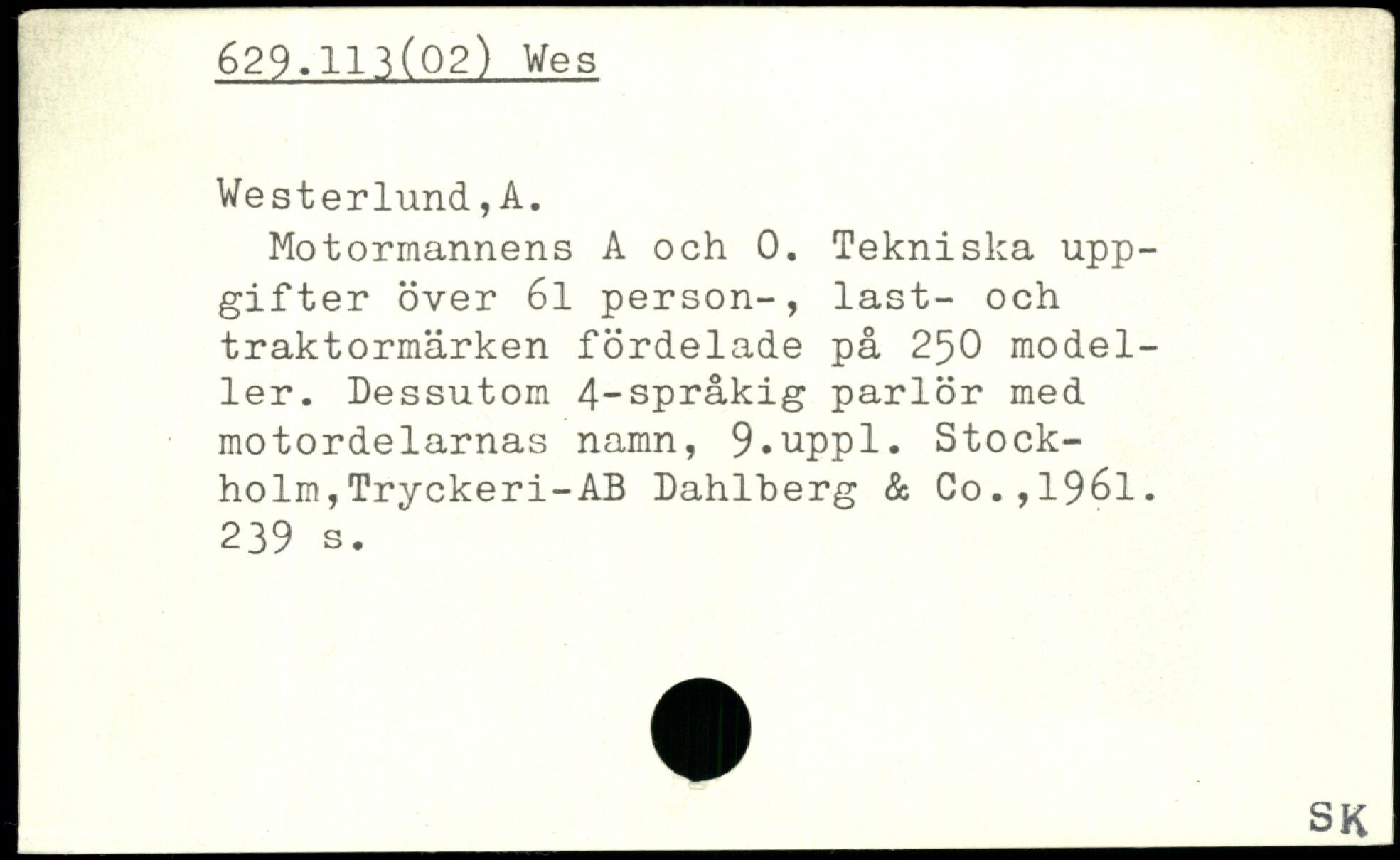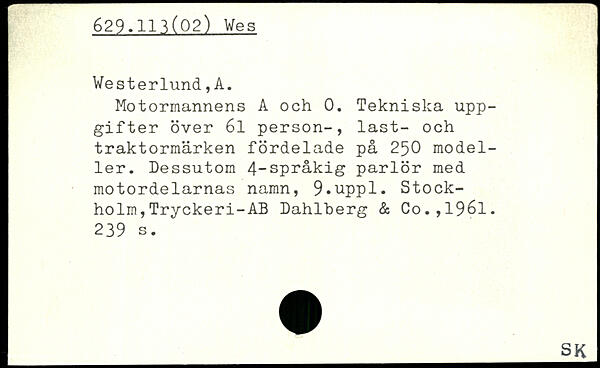 Motormannens A och 0. Tekniska uppgifter över 61 person-, last- och traktormärken fördelade på 250 modeller. Dessutom 4-språkig parlör med motordelarnas namn, 9,uppl.