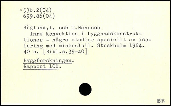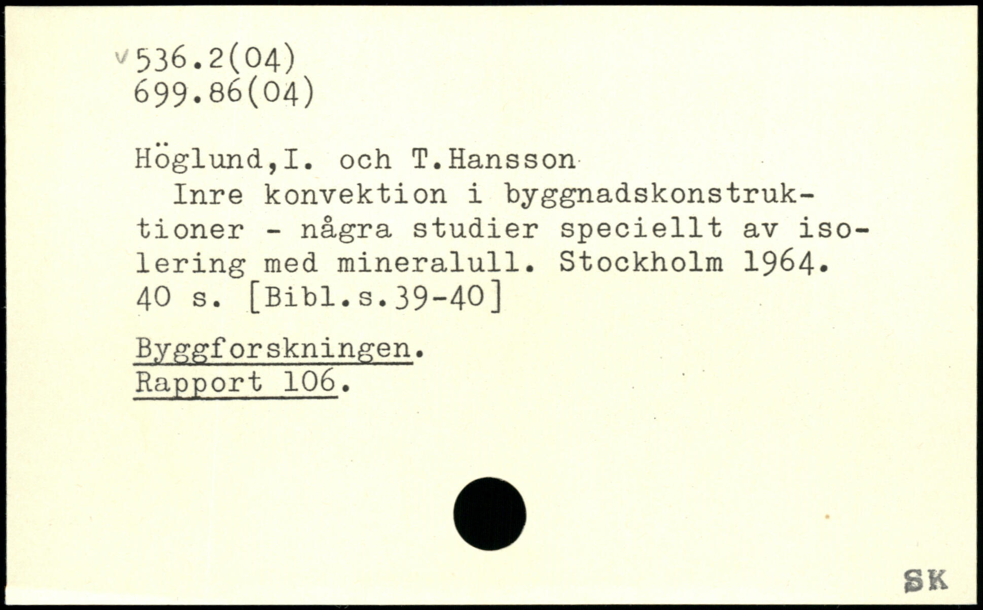 Inre konvektion i byggnadskonstruk-tioner - några studier speciellt av isolering med mineralull.