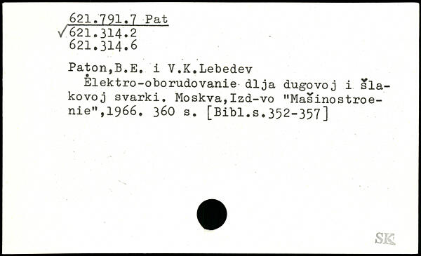 Elektro-oborudovanie dlja dugovoj i gla-kovoj svarki. Moskva,Izd-vo "Masinostroe-nieH,1966, 36O s