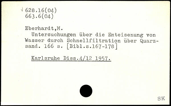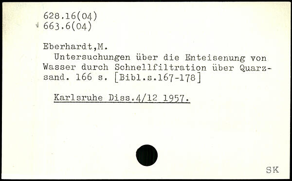 Untersuchungen über die Enteisenung von Wasser durch Schnellfiltration über Quarzsand.