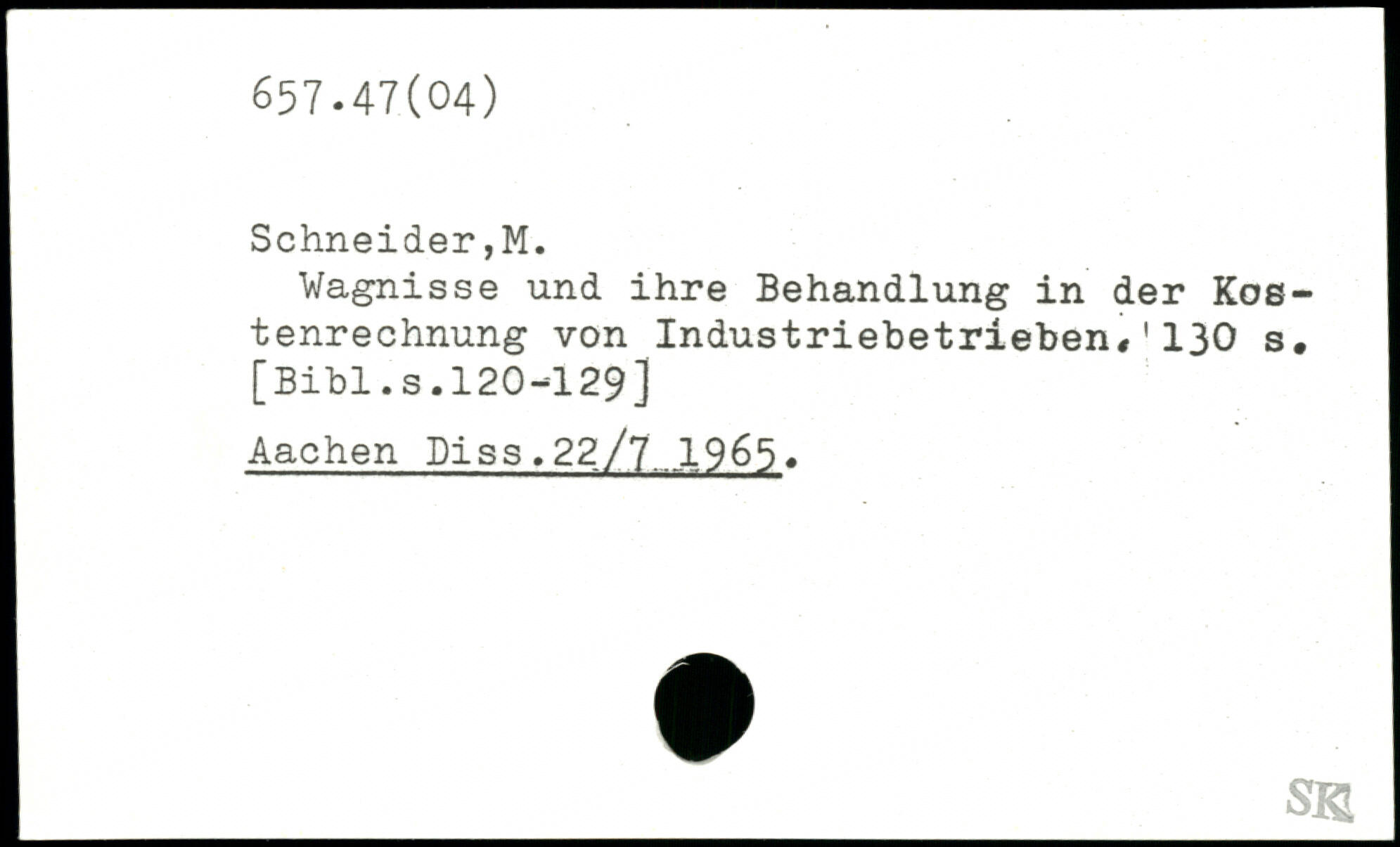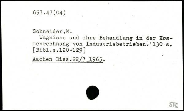 Wagnisse und ihre Behandlung in der Kostenrechnung von Industriebetrieben,'