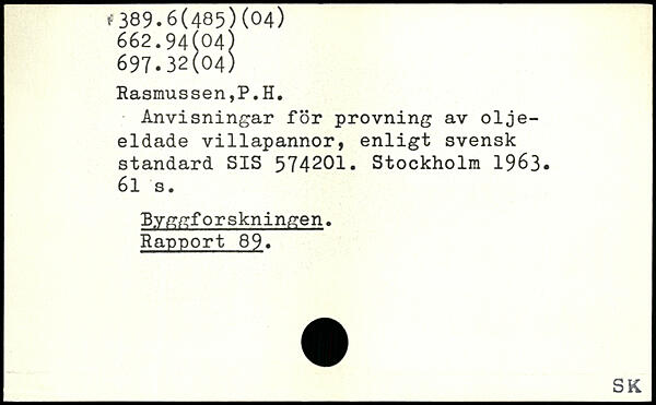 Anvisningar för provning av olje-eldade villapannor, enligt svensk standard SIS 574201.
