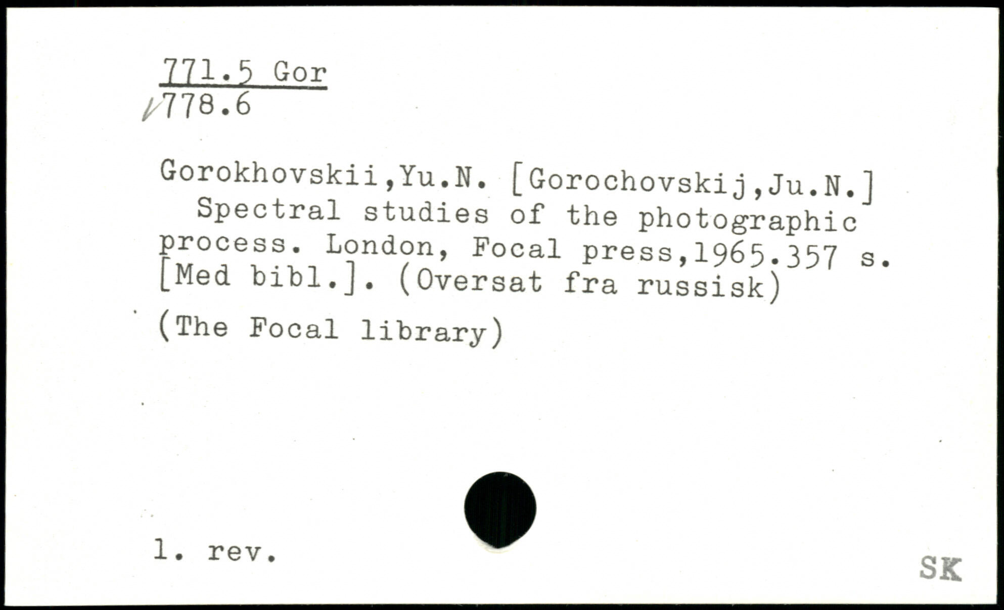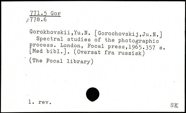 Gorokhovskii,Yu.N. [Gorochovskij,Ju.N.] Spectral studies of the photographic process.