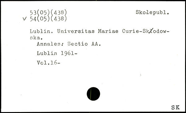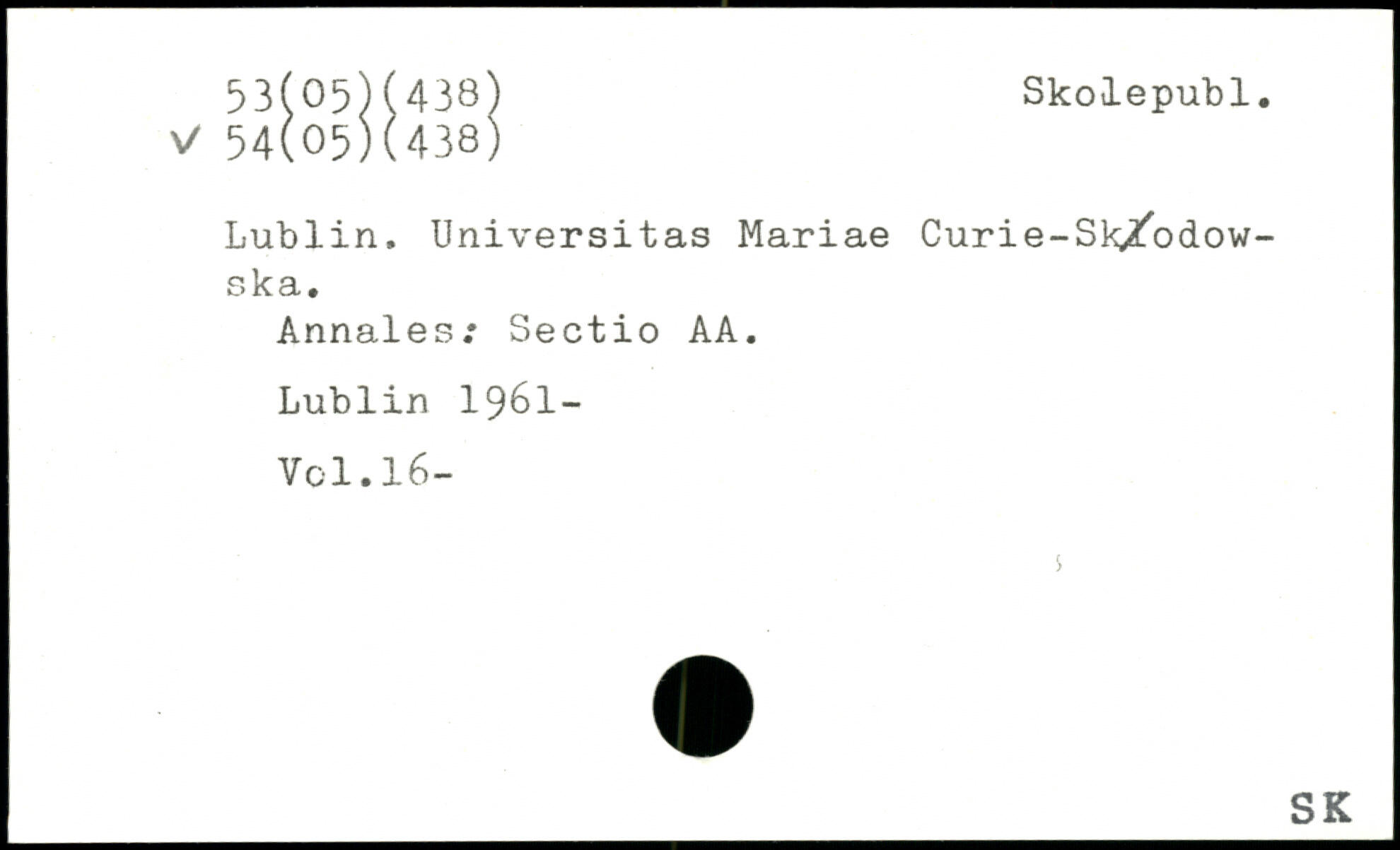 Lublin, Universitas Mariae Curie-Sk^odow-ska, Annales; Sectio AA. Lublin 1961-