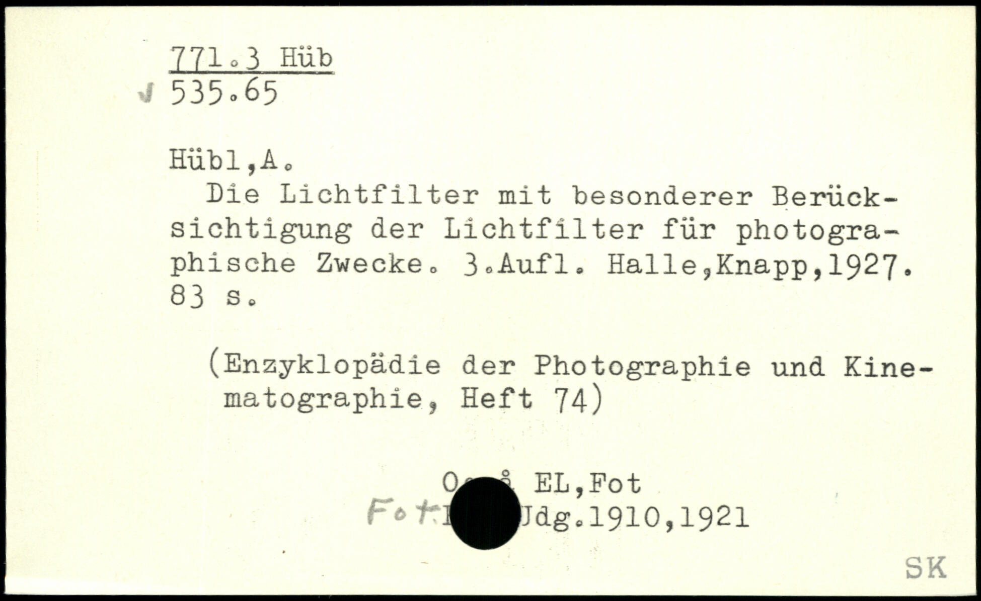 UDK: 771.3 Hüb, 535.65
