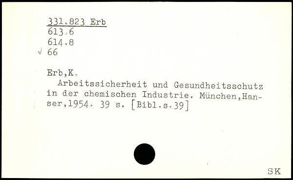 Arbeitssicherheit und Gesundheitsschutz in der chemischen Industrie, München,Han~ ser,1954