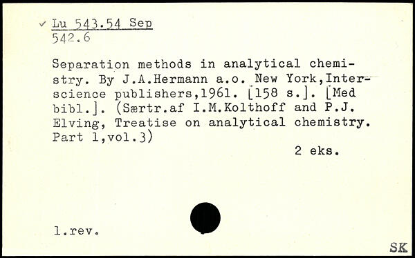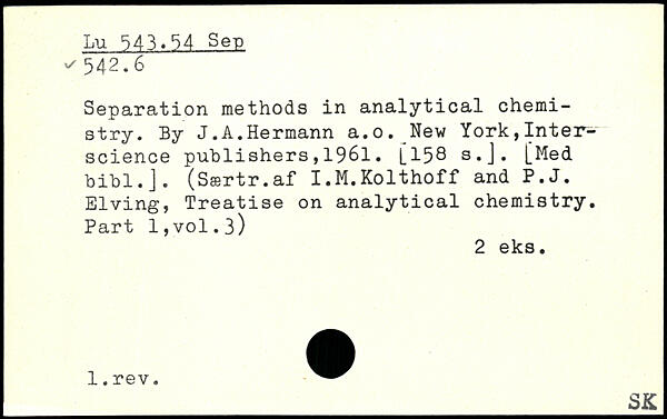 Separation methods in analytical chemistry. By J.A.Hermann a.o.