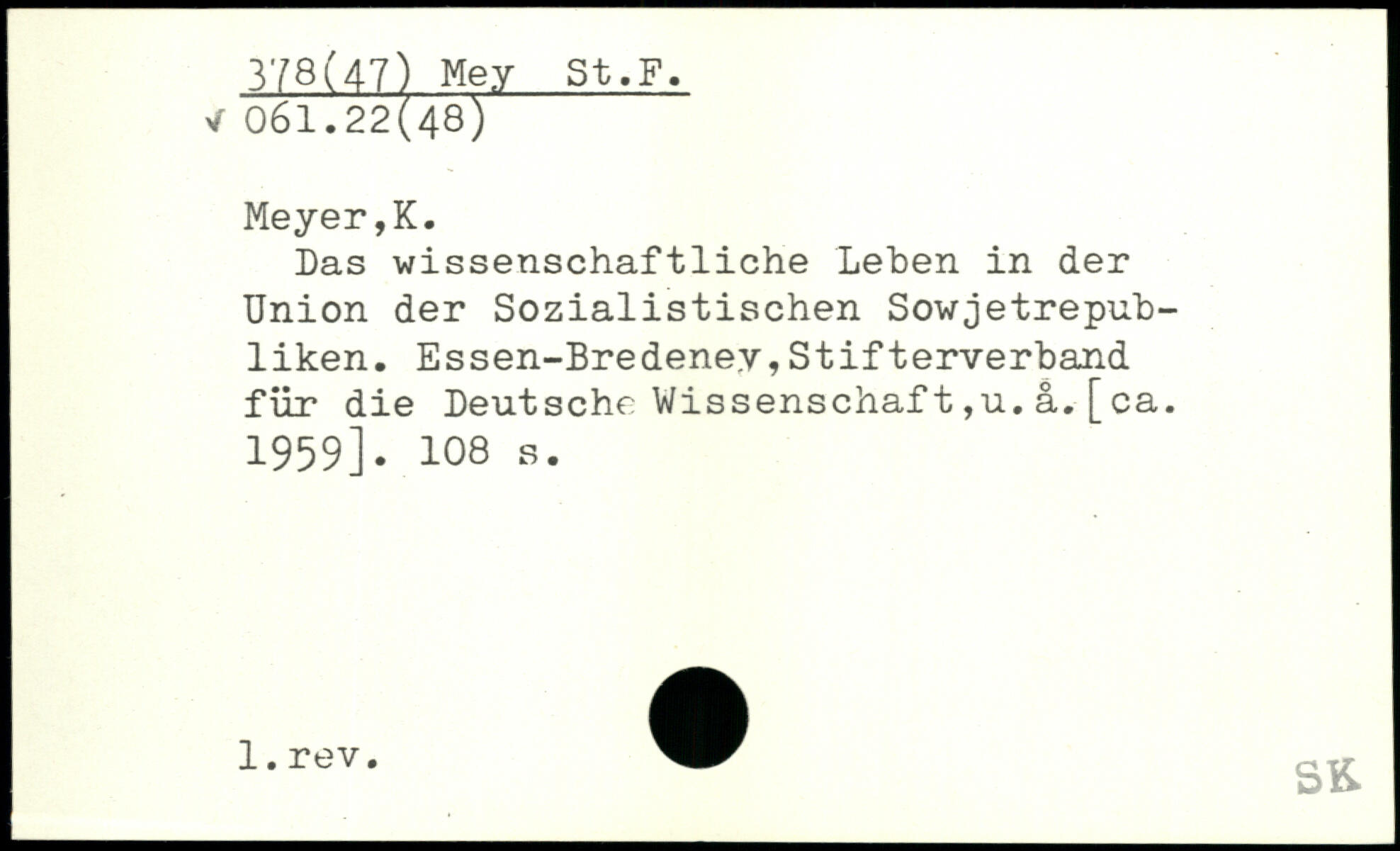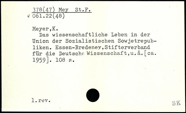 Das wissenschaftliche Leben in der Union der Sozialistischen Sowjetrepubliken. Essen-Bredeney,Stifterverband für die Deutsche Wissenschaf t ,u. a. [ ca. 1959].