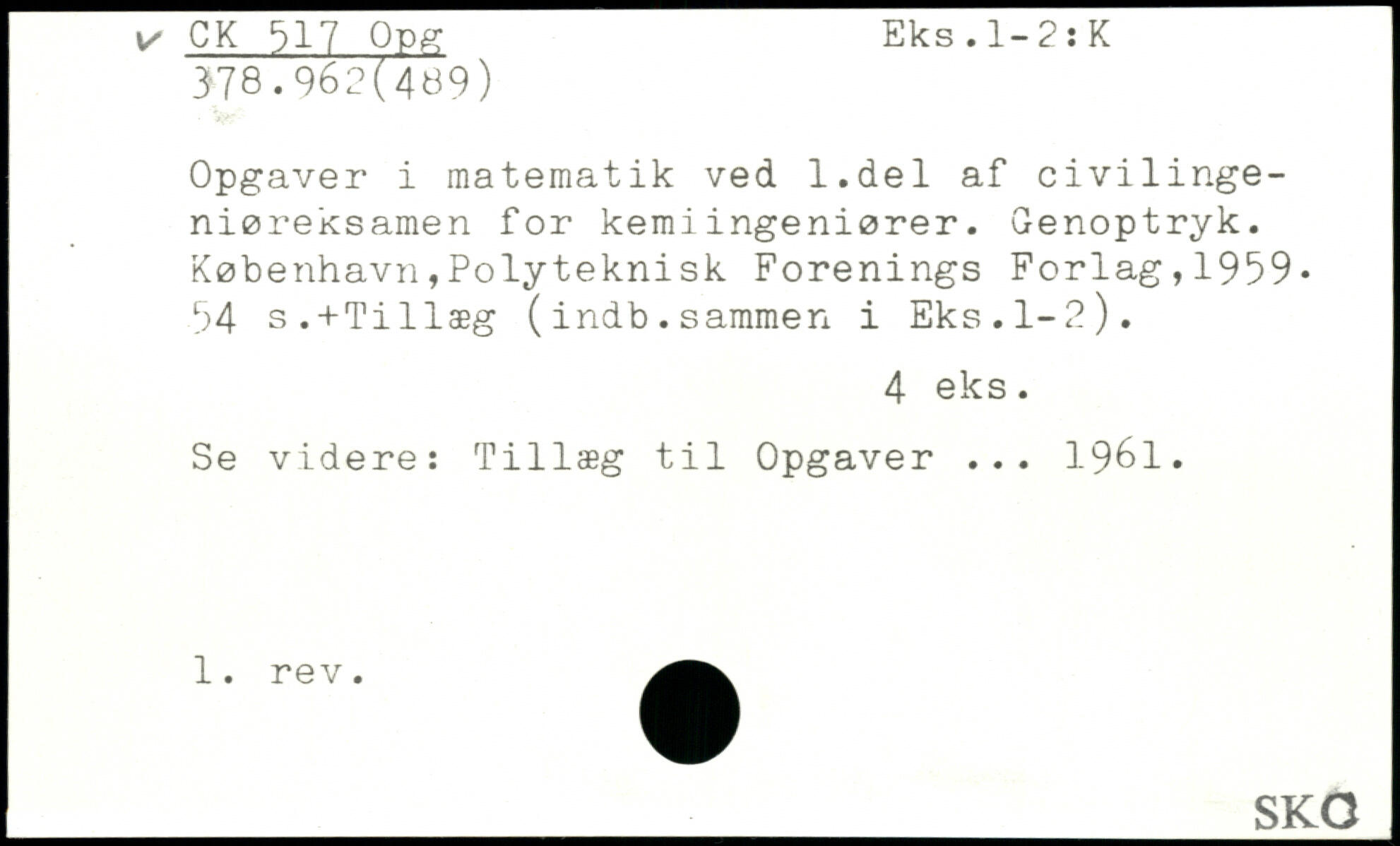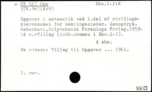 Opgaver i matematik ved l.del af civilingeniøreksamen for kemi ingeniører. Genoptryk.