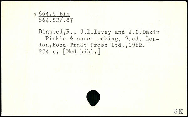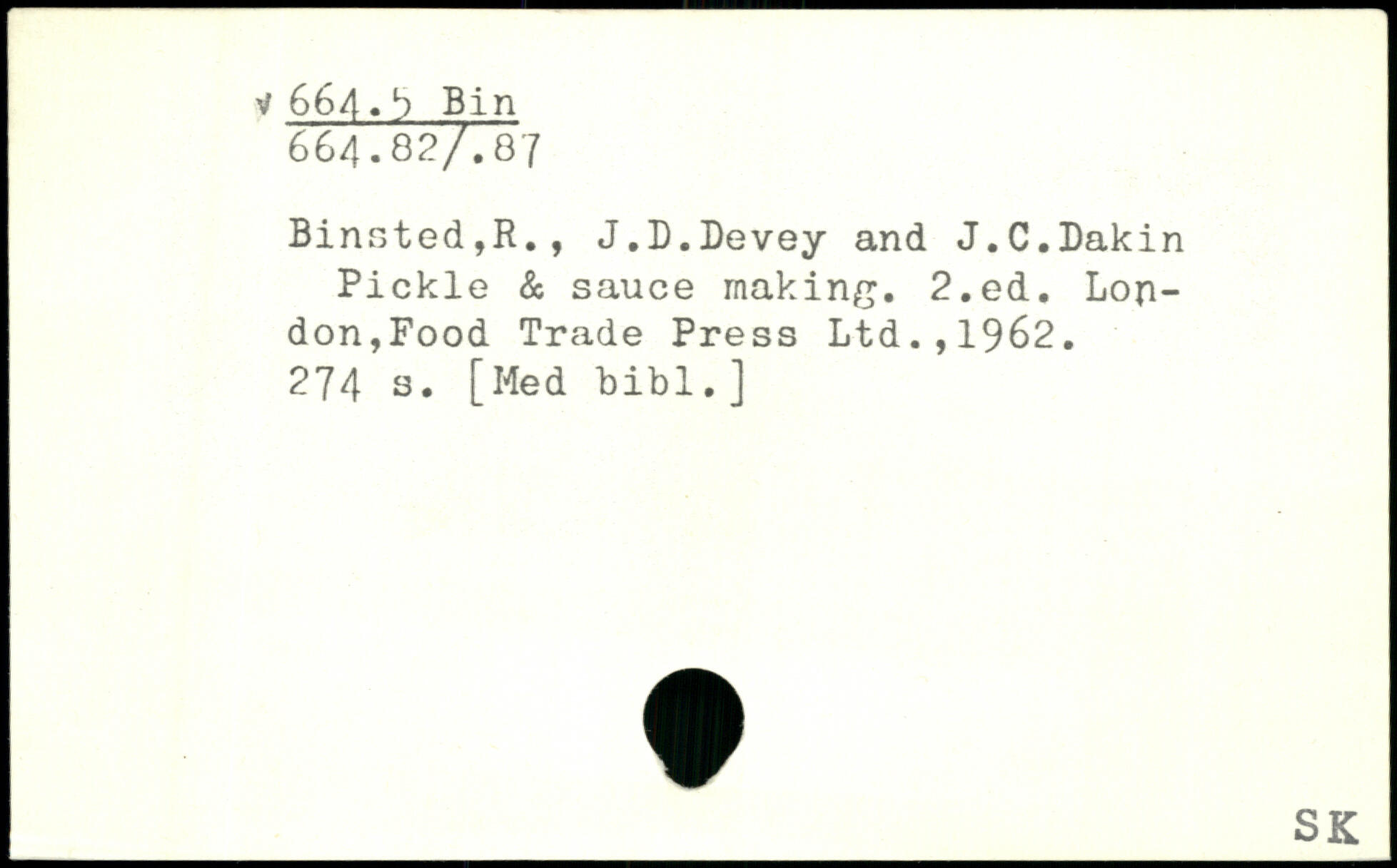 Binsted,R., J.D.Devey and J.C.Dakin Pickle & sauce making.