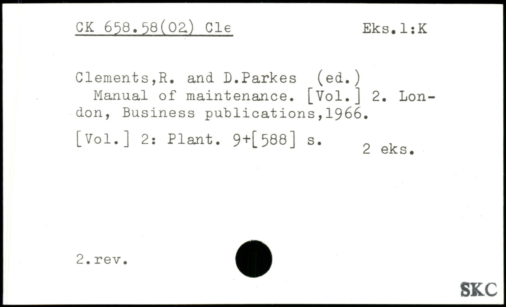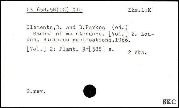 Manual of maintenance. [Vol.] 2.