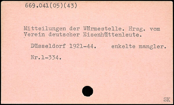 Mitteilungen der Wärmestelle. Hrsg, vom Verein deutscher Eisenhüttenleute. Düsseldorf 1921-44. enkelte mangler. Nr.1-334.