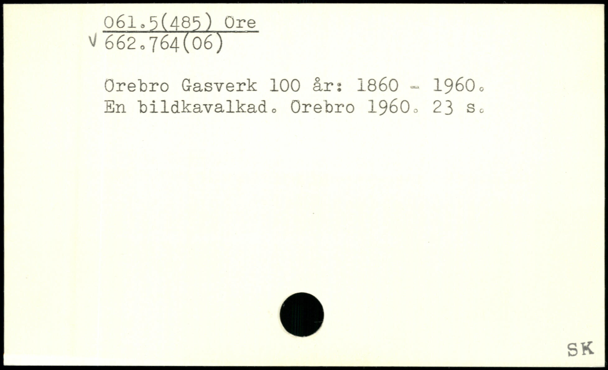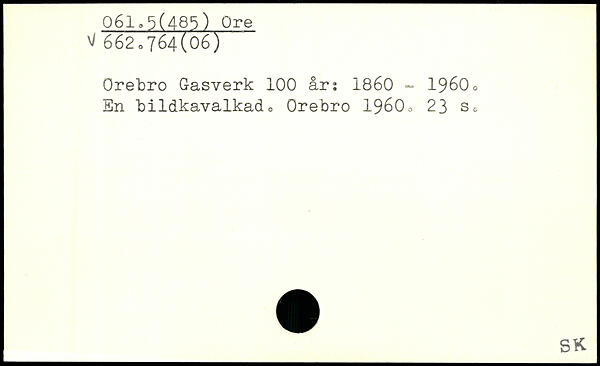 Örebro Gasverk 100 år: 1860 - 19600 En bildkavalkad o Örebro 19600