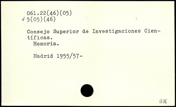 Consejo Superior de Investigaciones Cien-tificas. Memoria.