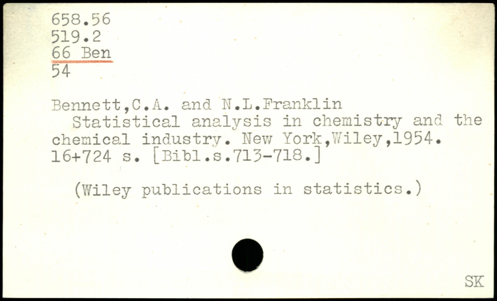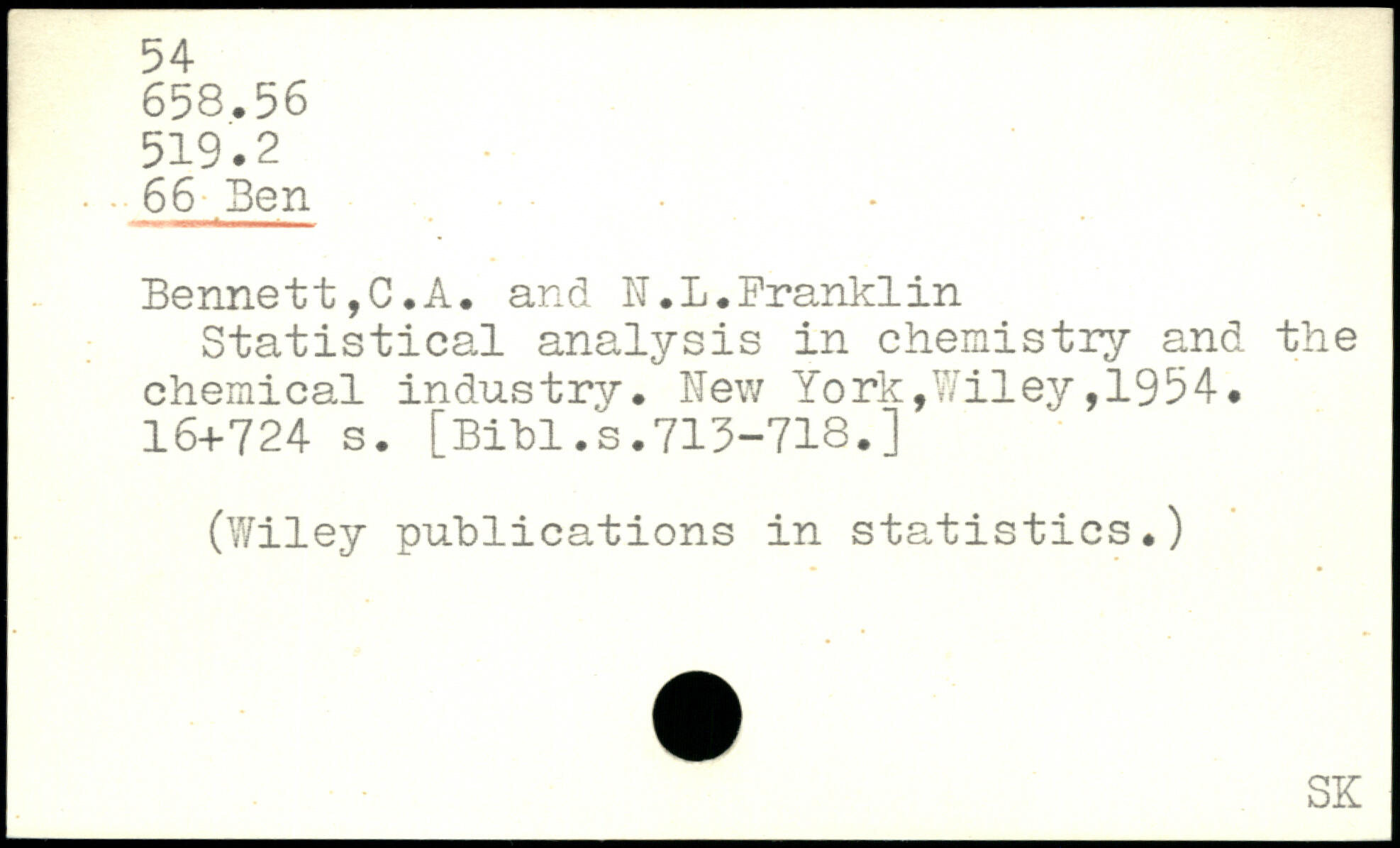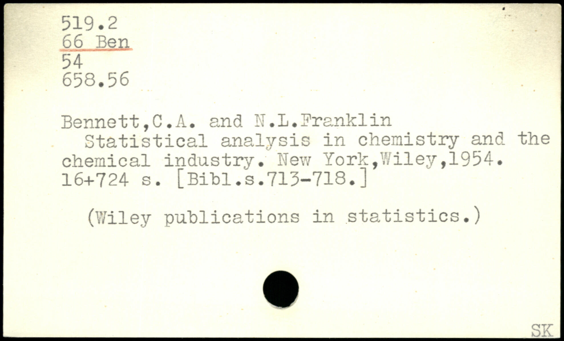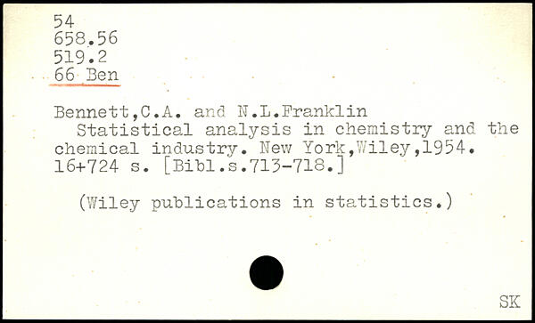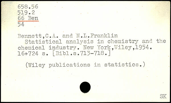 Bennett, C.A. and IT.L.Branklin Statistical analysis in chemistry and the chemical industry.