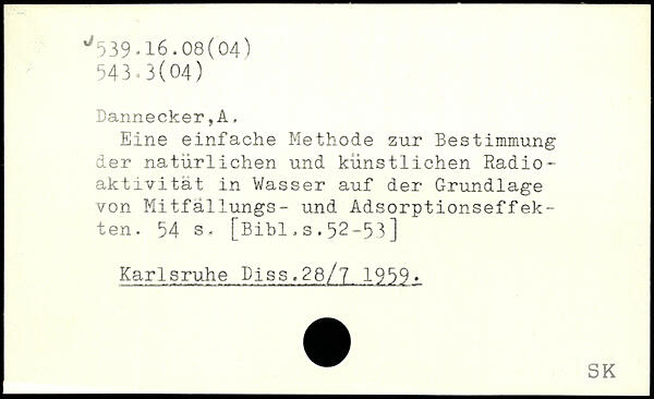 Eine einfache Methode zur Bestimmung der natürlichen und künstlichen Radioaktivität in Wasser auf der Grundlage von Mitfällungs- und Adsorptionseffekten.
