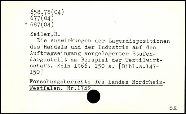 Die Auswirkungen der Lagerdispositionen des Handels und der Industrie auf den Auftragseingang vorgelagerter Stufen-dargestellt am Beispiel der Textilwirtschaft.