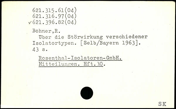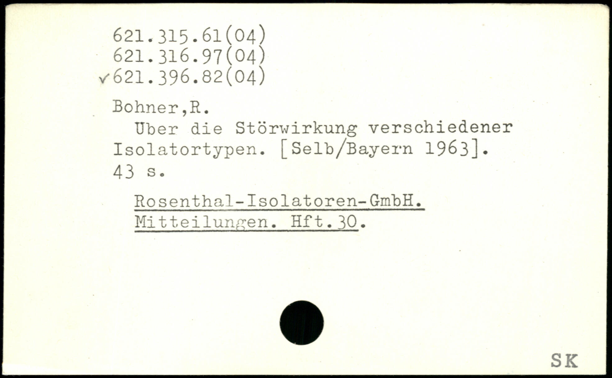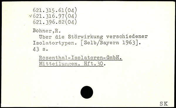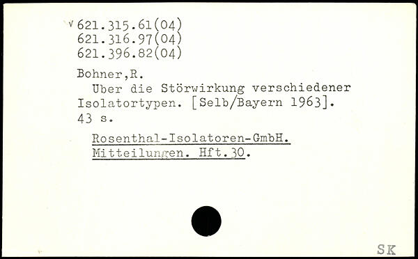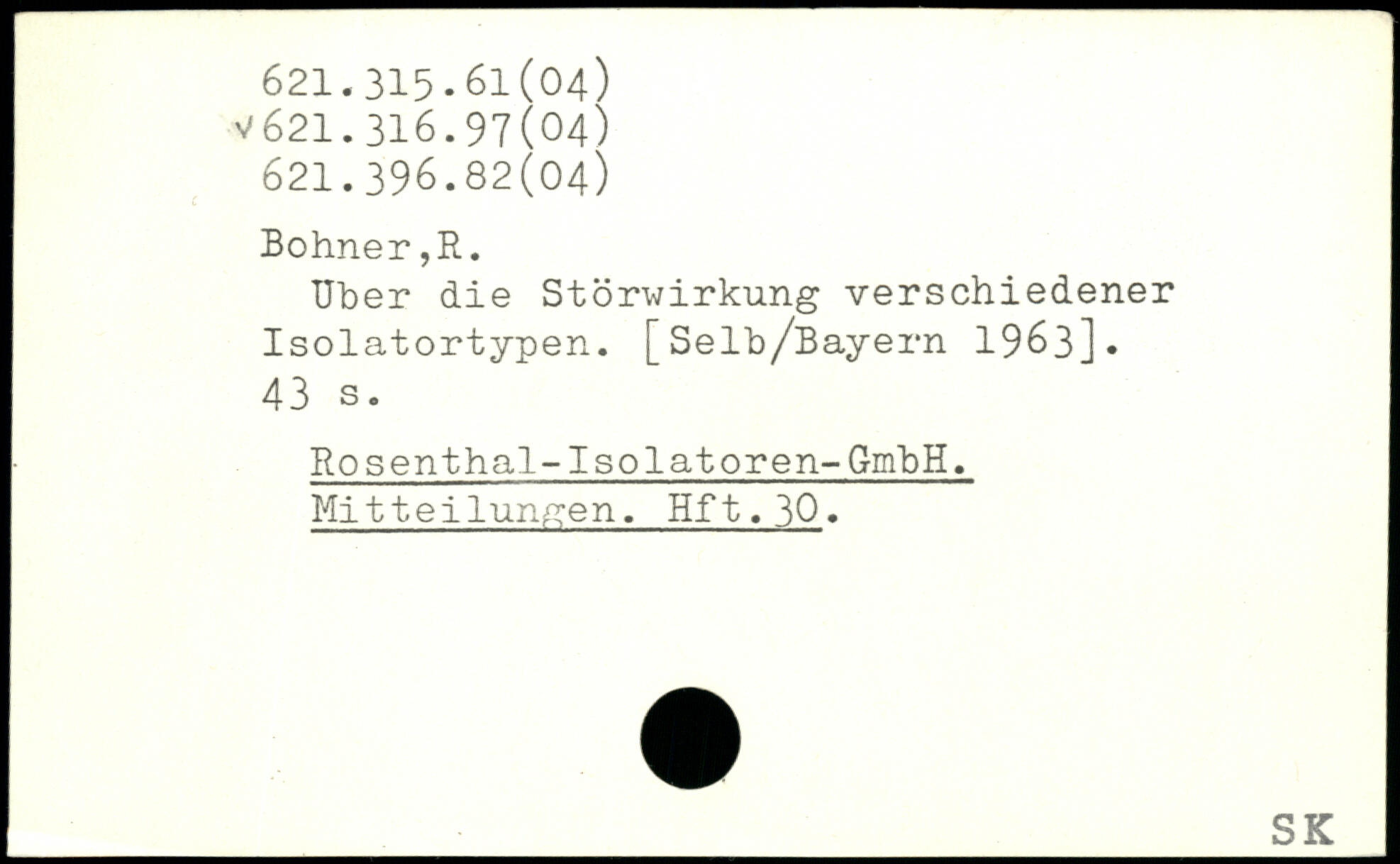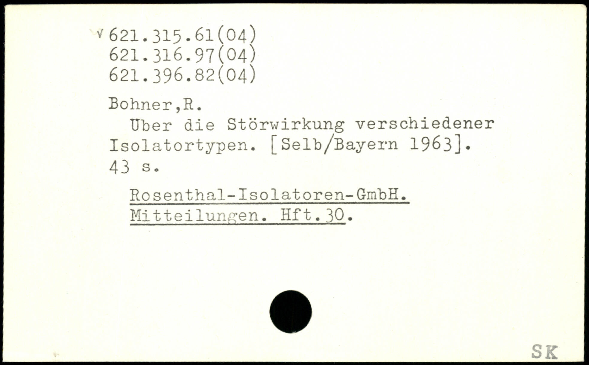 über die Störwirkung verschiedener Isolatortypen. [Selb/Bayern 1963]-