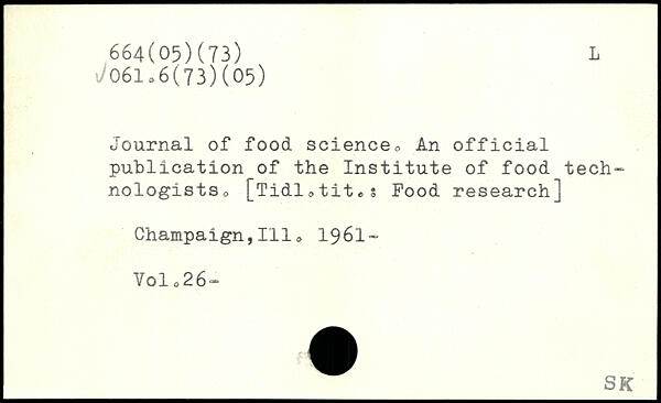 Journal of food science <> An official publication of the Institute of food tech-nologistSo [TidlotiteS Food research] Champaign,111o 1961- Yolo26-