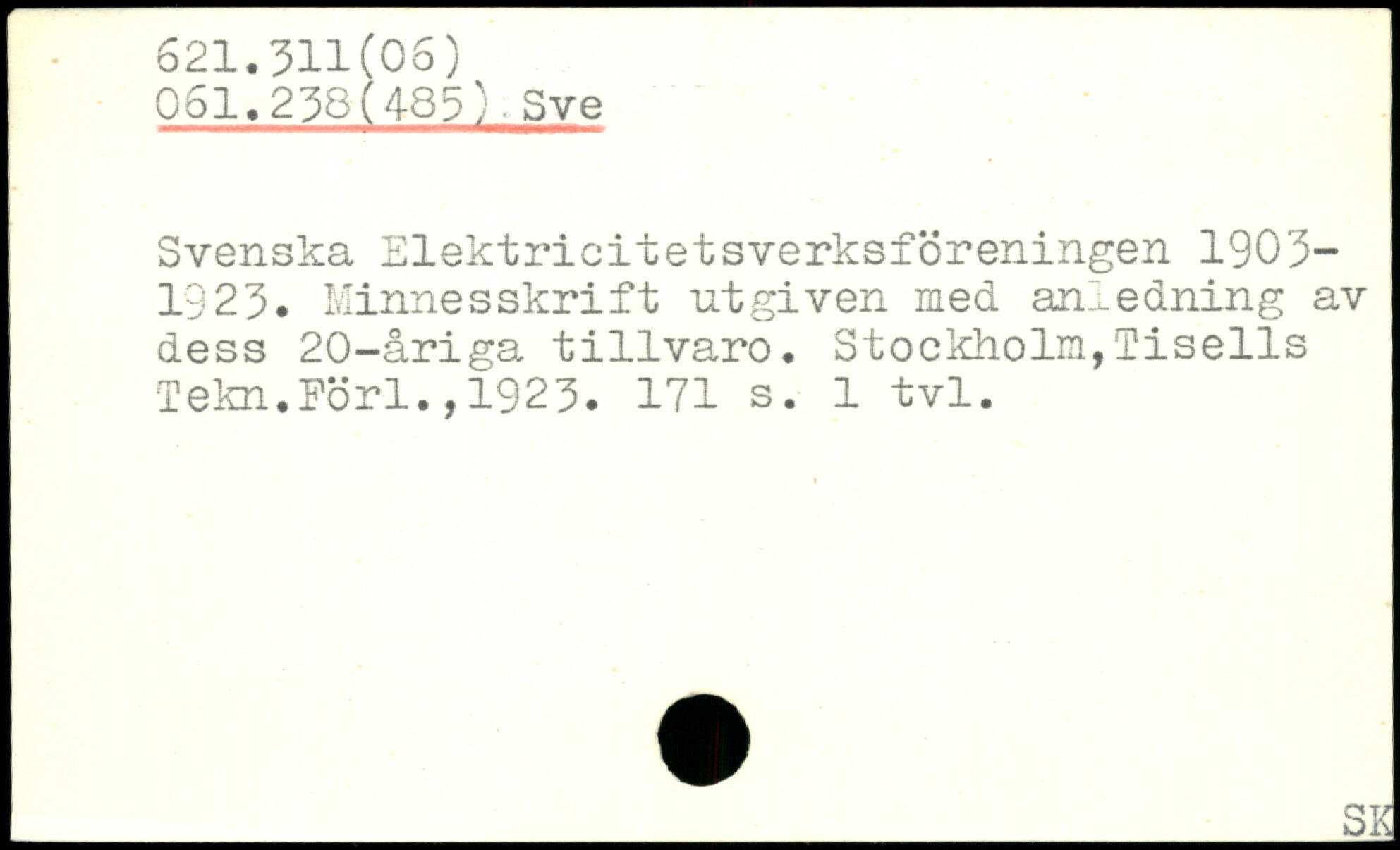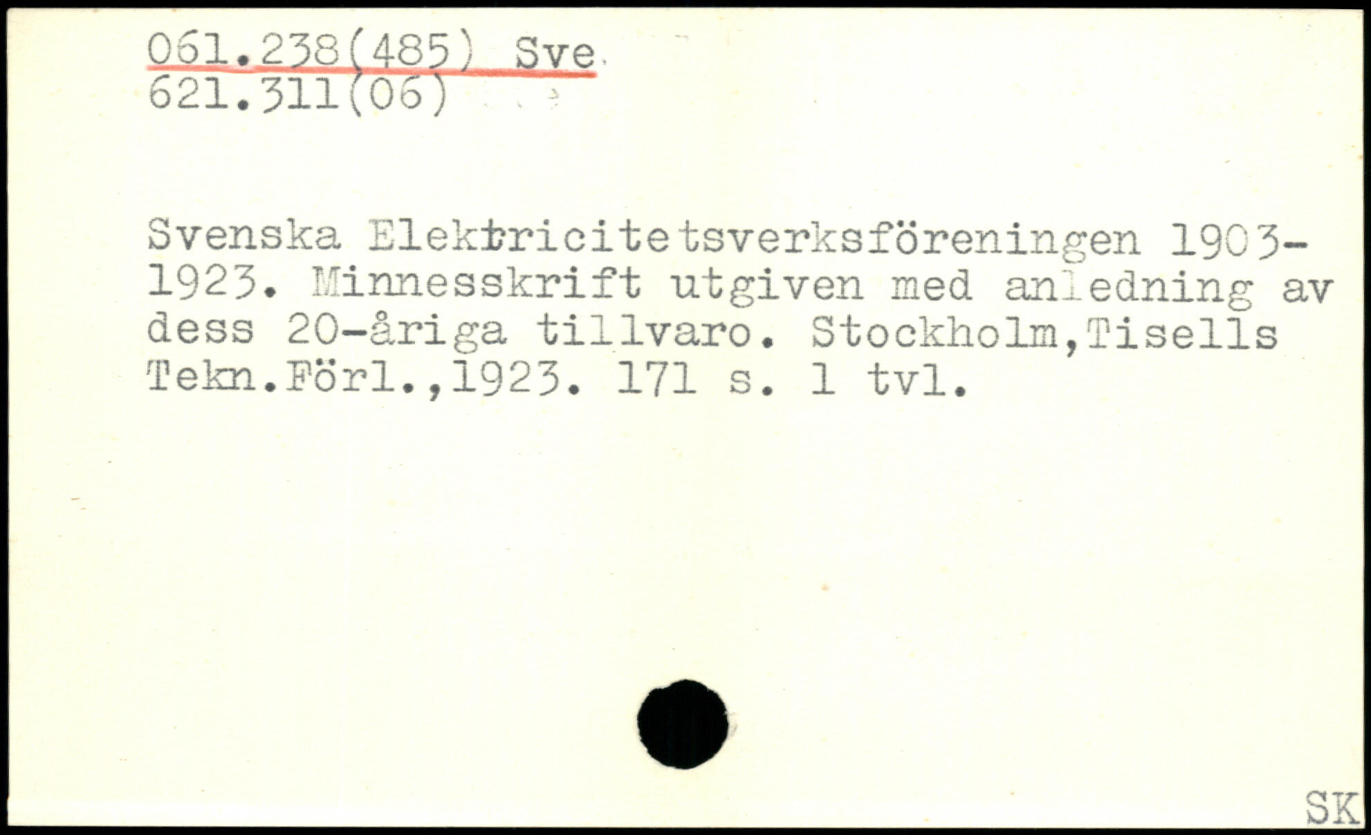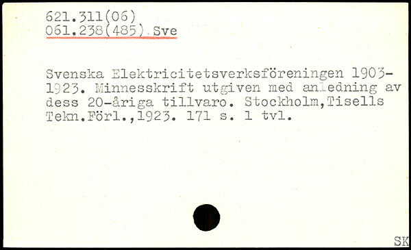 Svenska Elektricitetsverksföreningen 1903-1923. Minnesskrift utgiven med anledning av I dess 20-åriga tillvaro, Stockholm,Tisells Tekn.Förl.,1923.