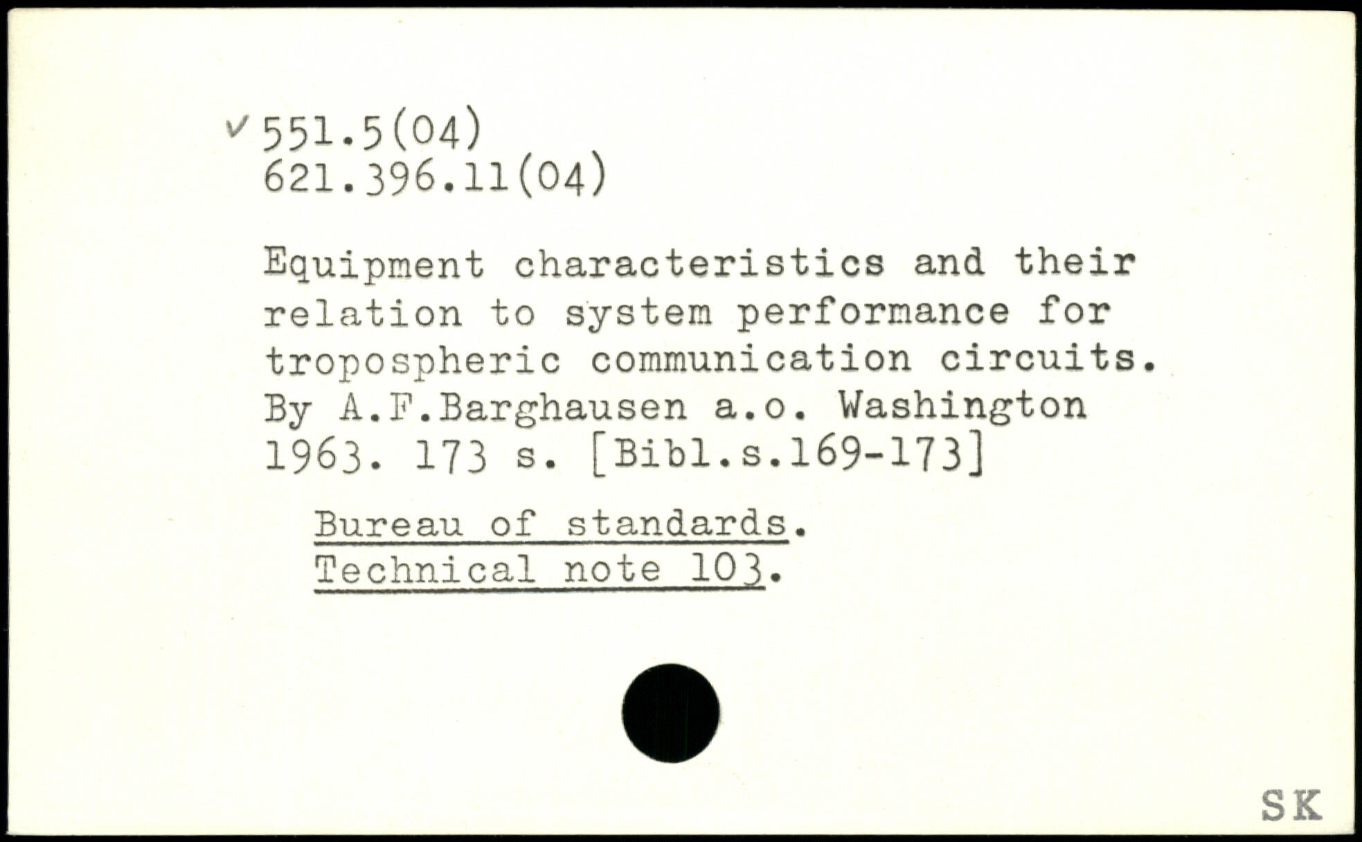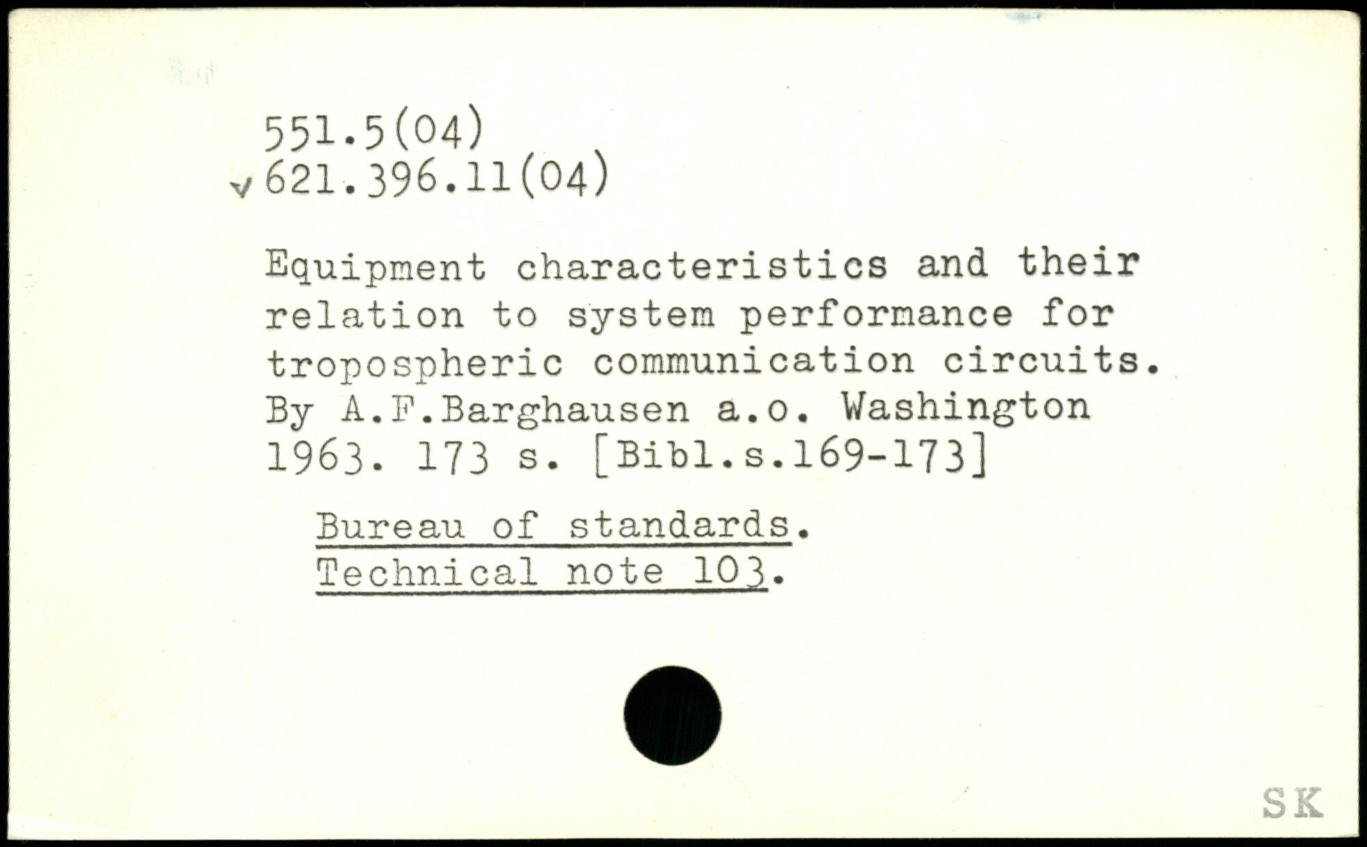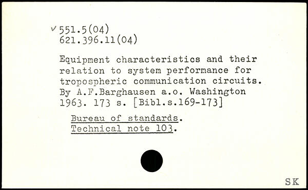 Equipment characteristics and their relation to system performance for tropospheric communication circuits. By A.F.Barghausen a.o.