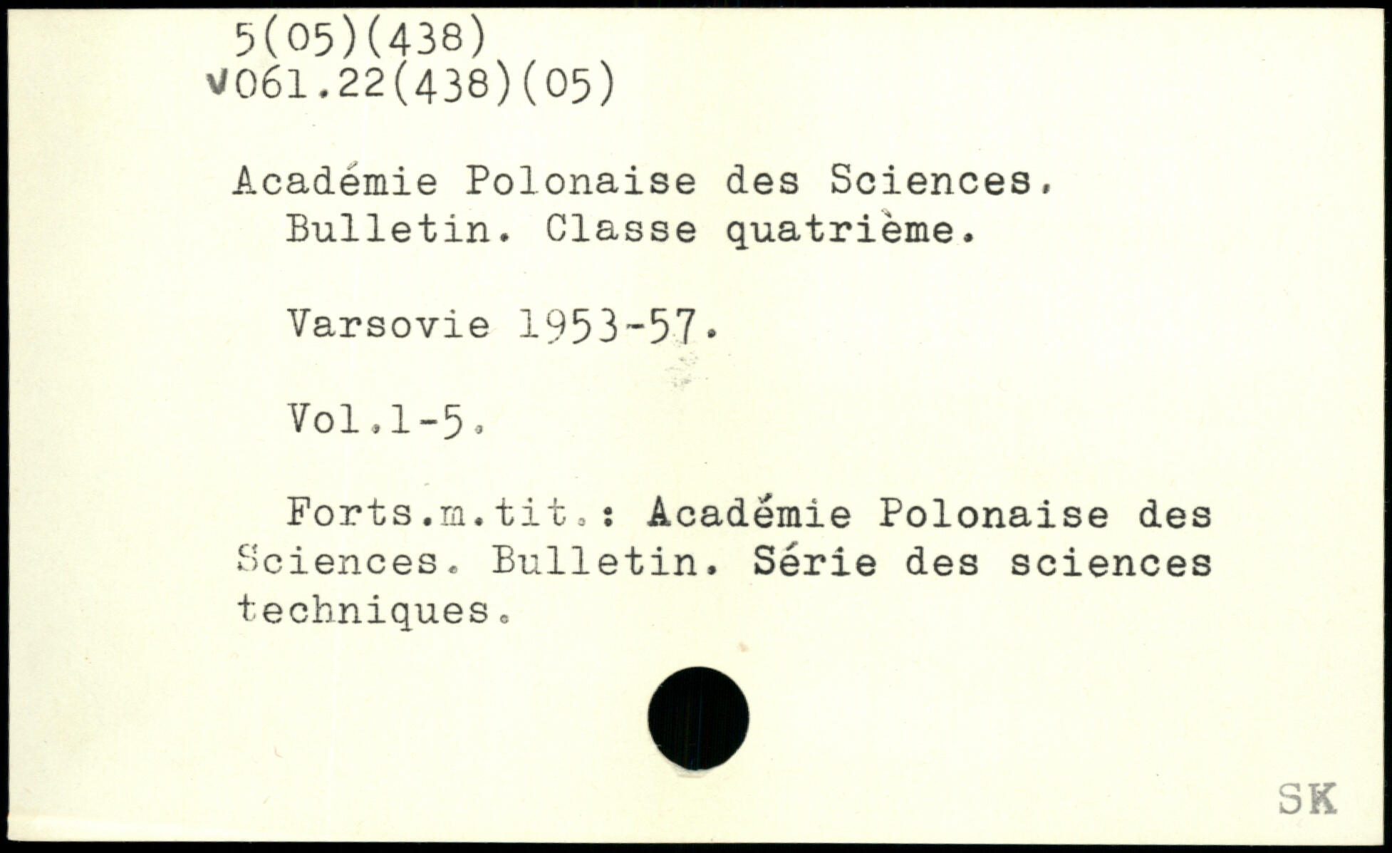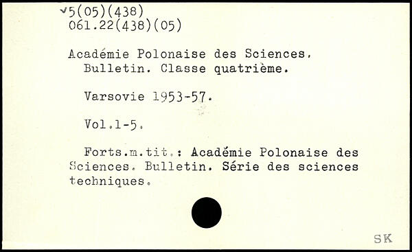 Académie Polonaise des Sciences, Bulletin. Classe quatrième. Varsovie 1953-57.