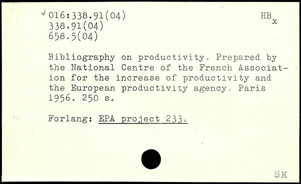 Bibliography on productivity , Prepared by the National Centre of the French Association for the increase of productivity and the European productivity agency