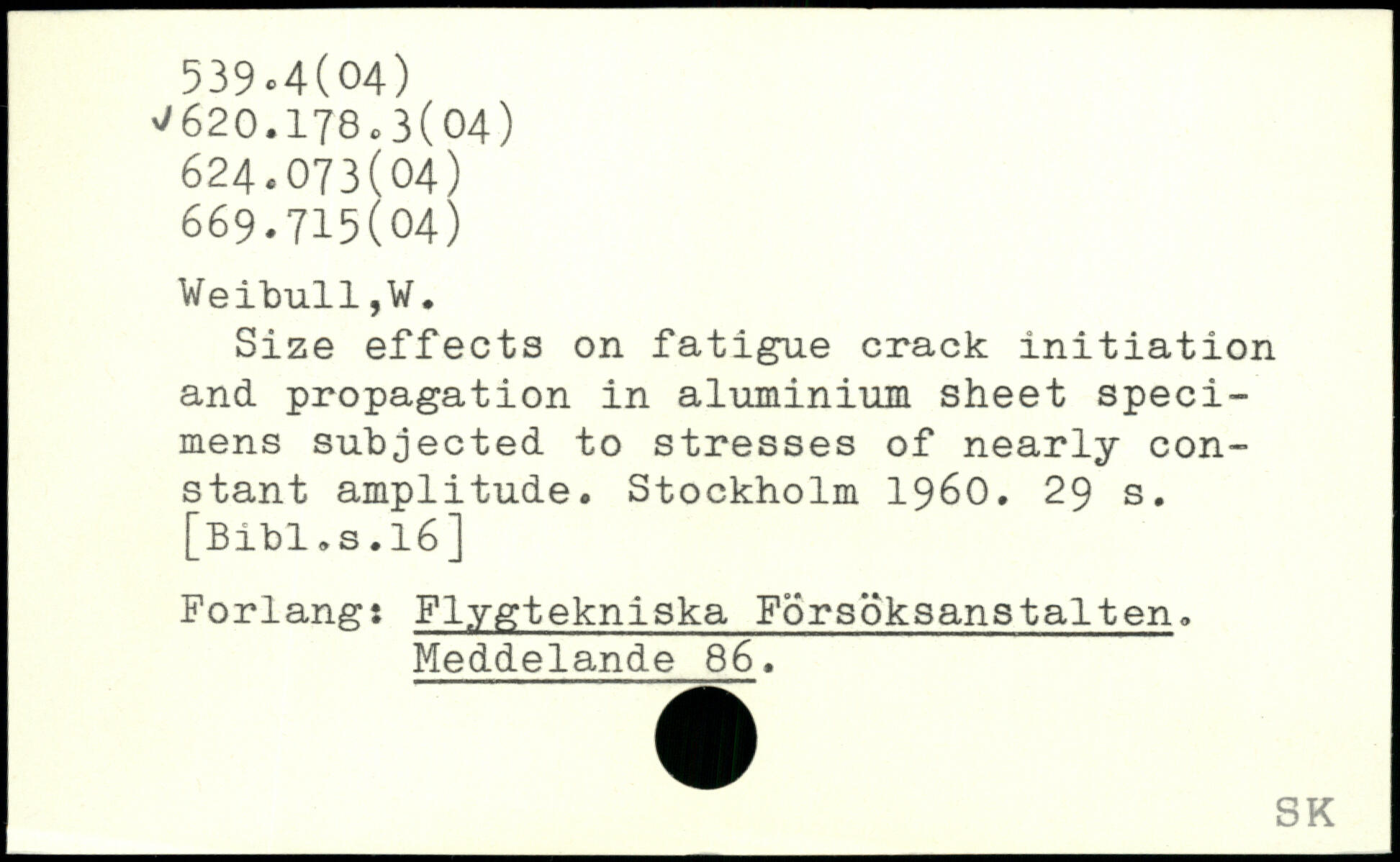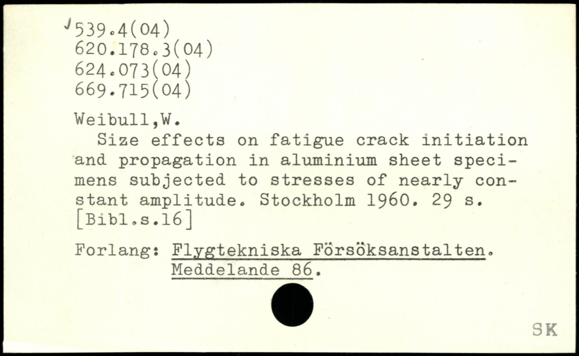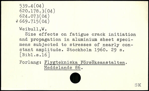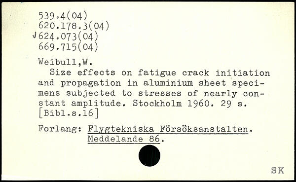 Size effects on fatigue crack initiation and propagation in aluminium sheet specimens subjected to stresses of nearly constant amplitude.
