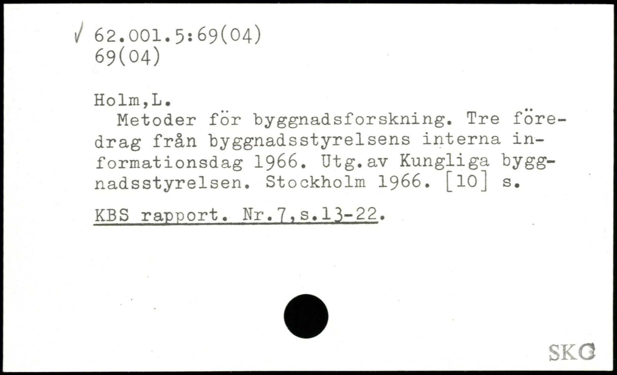 Metoder for byggnadsforskning. Tre foredrag från byggnadsstyrelsens interna informationsdag 1966. Utg.av Kungliga byggnadsstyrelsen.