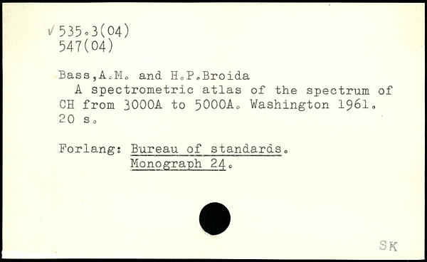 BasSjAcMo and HoP,Broida A spectrométrie atlas of the spectrum of CH from 3000A to 5000Ao