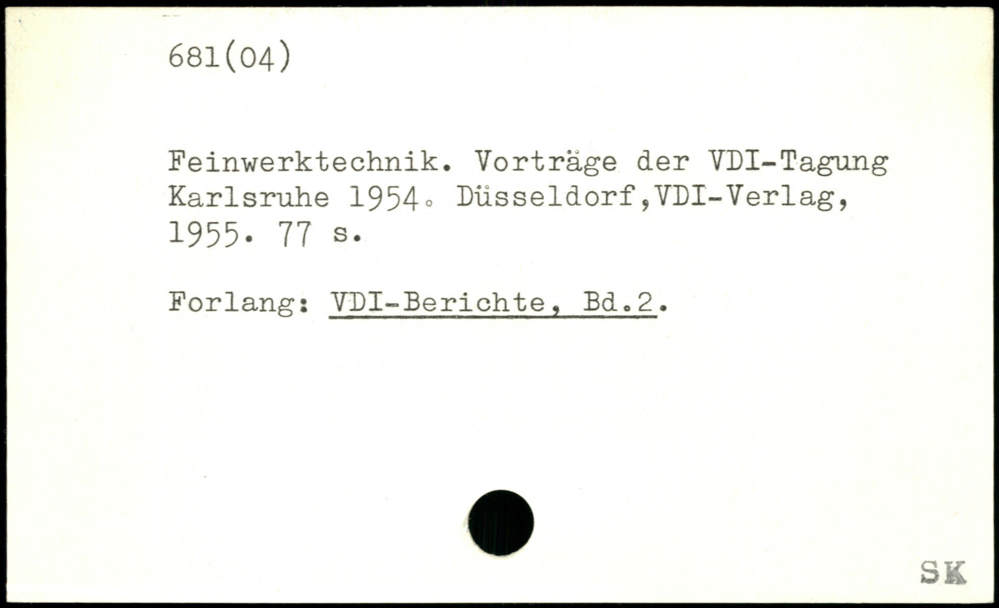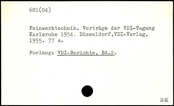 Feinwerktechnik. Vorträge der VDI-Tagung Karlsruhe 1954.