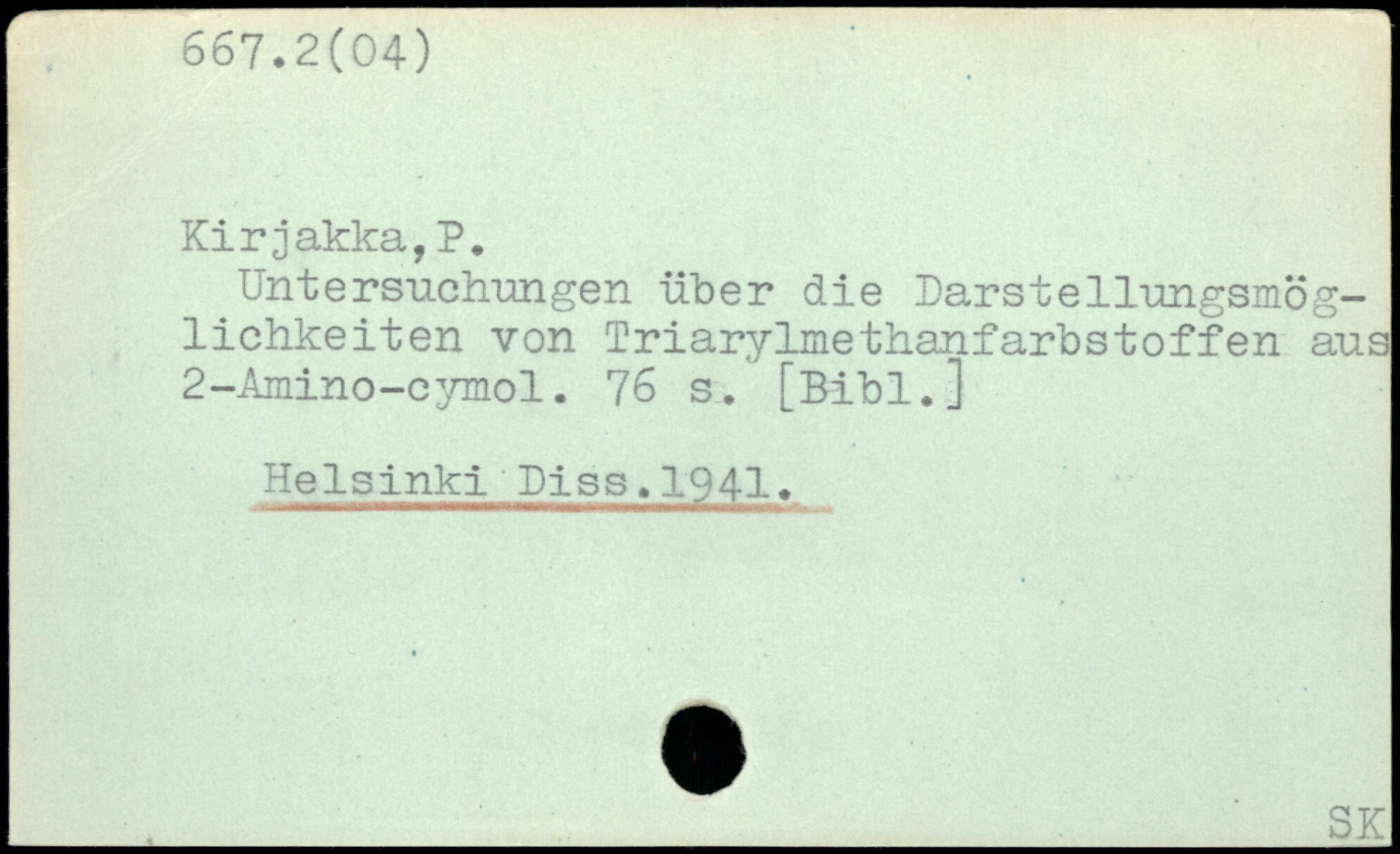 Untersuchungen über die Darstellungsmöglichkeiten von TriaryImethanfarbstoffen aus 2-Amino-cymol.