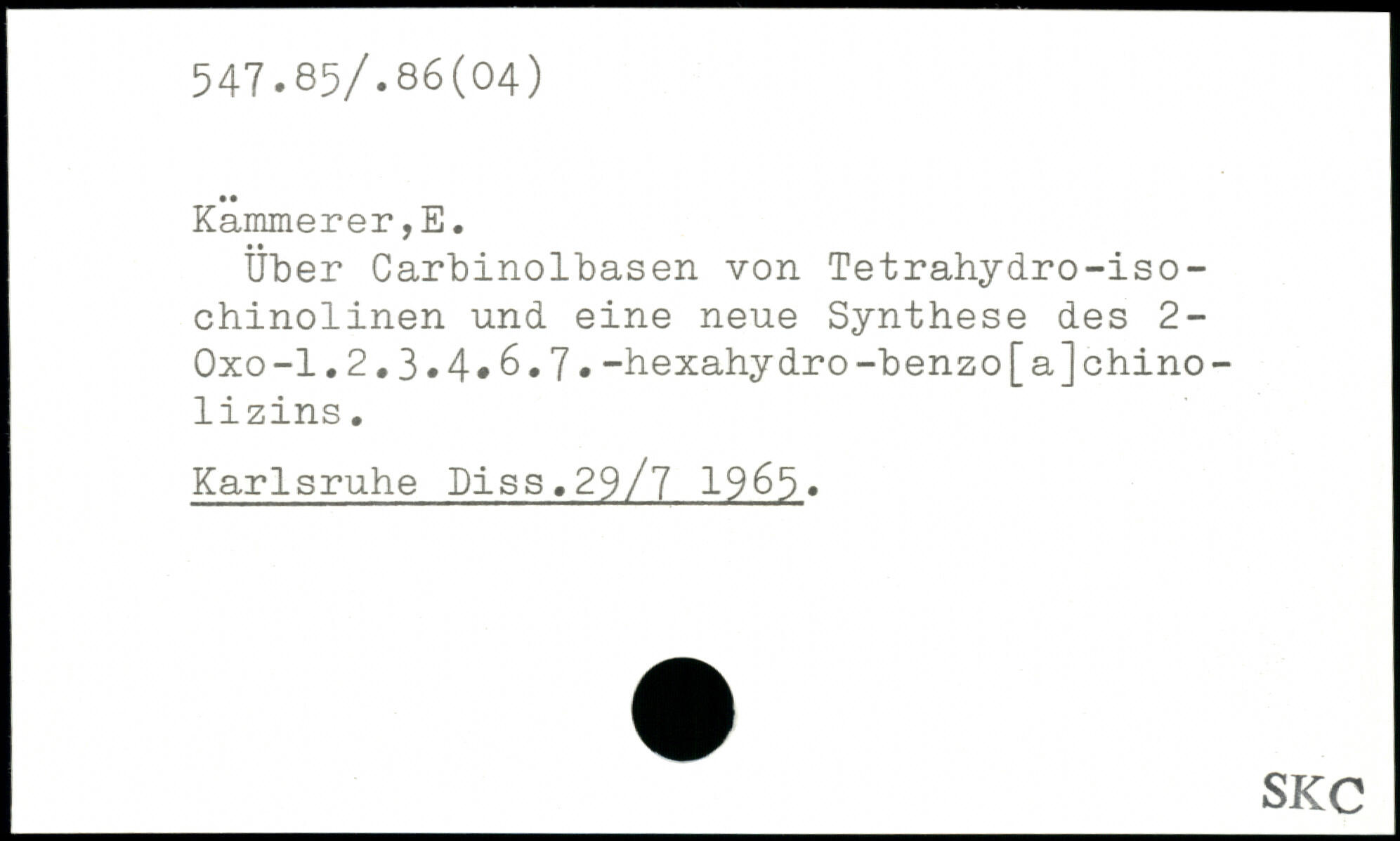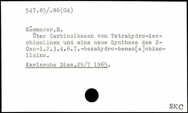 Über Carbinolbasen von Tetrahydro-iso-chinolinen und eine neue Synthese des 2-Oxo-1.2.3.4.6.7,-hexahydro-benzo[a]chino-lizins. Karlsruhe Piss,29/7 1963