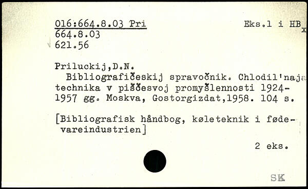 BibliografiJeskij spravoSnik. Chlodil'naja technika v piSSesvoj promySlennosti 1924-1957 88