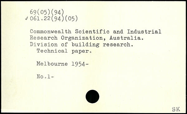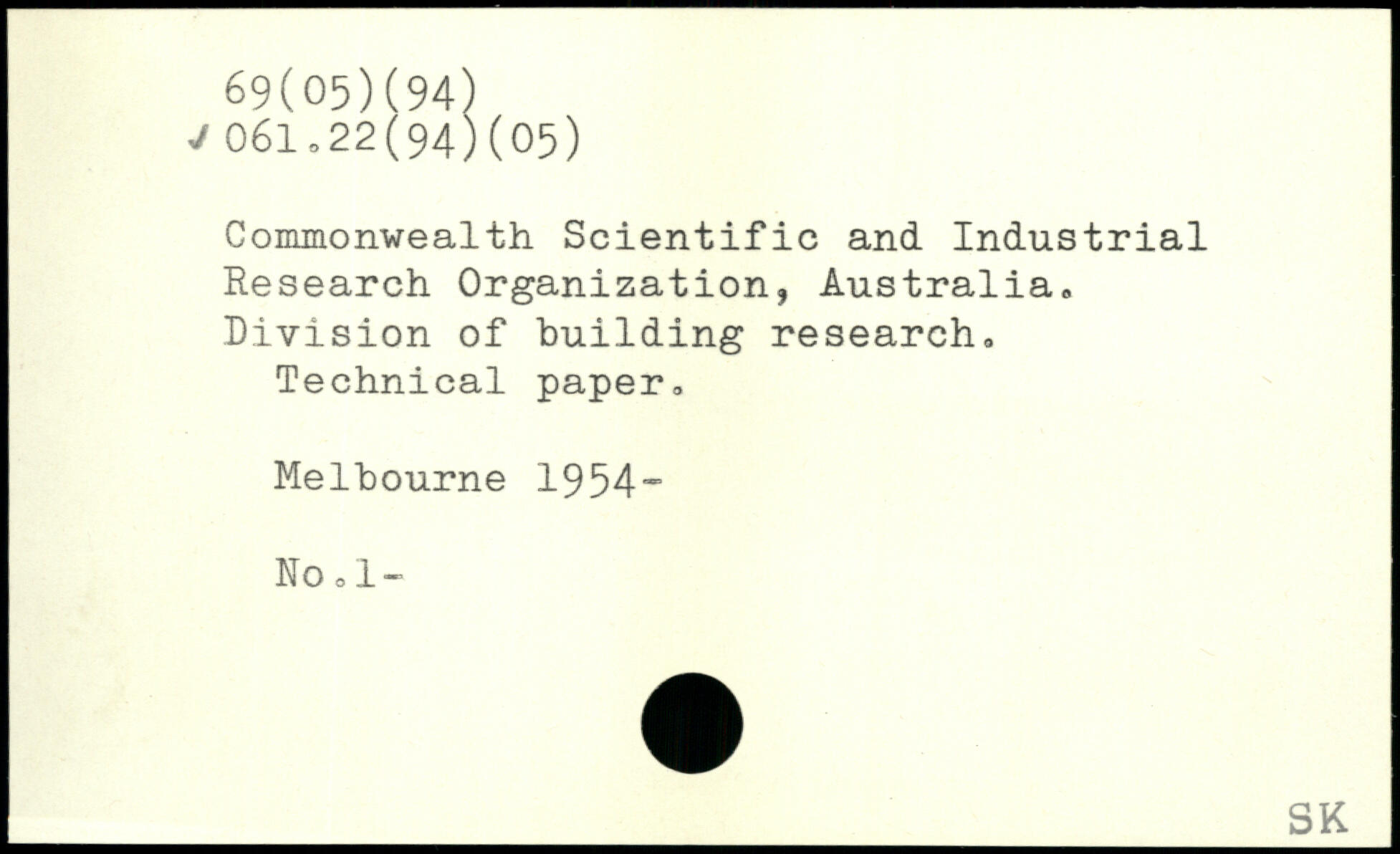 Commonwealth Scientific and Industrial Research Organization, Australia, Division of building research, Technical paper, Melbourne 1954“ No, 1-