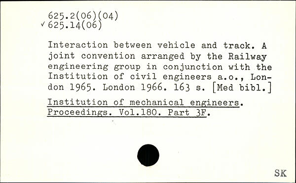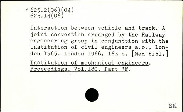 Interaction between vehicle and track. A joint convention arranged by the Railway engineering group in conjunction with the Institution of civil engineers a.o.