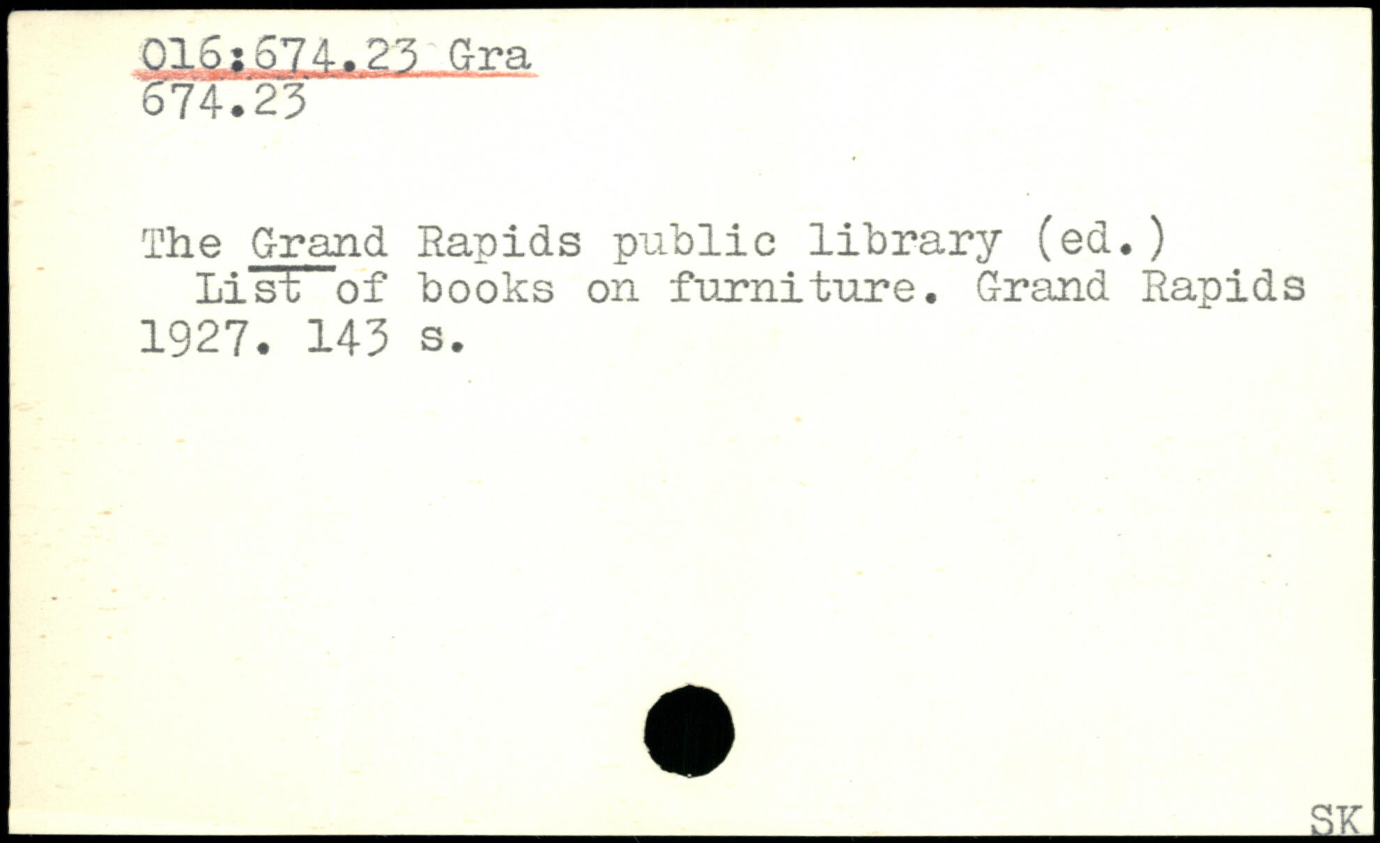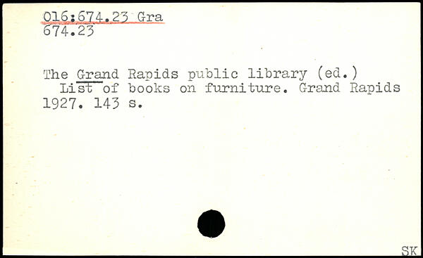 The Grand Rapids public library (ed. ) List of books on furniture. Grand Rapids 1927.
