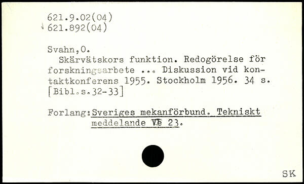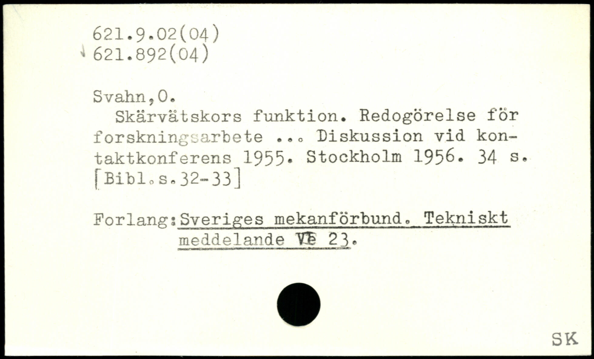 Skärvätskors funktion. Redogörelse för forskningsarbete ..o Diskussion vid kontaktkonferens 1955, Stockholm 195&.