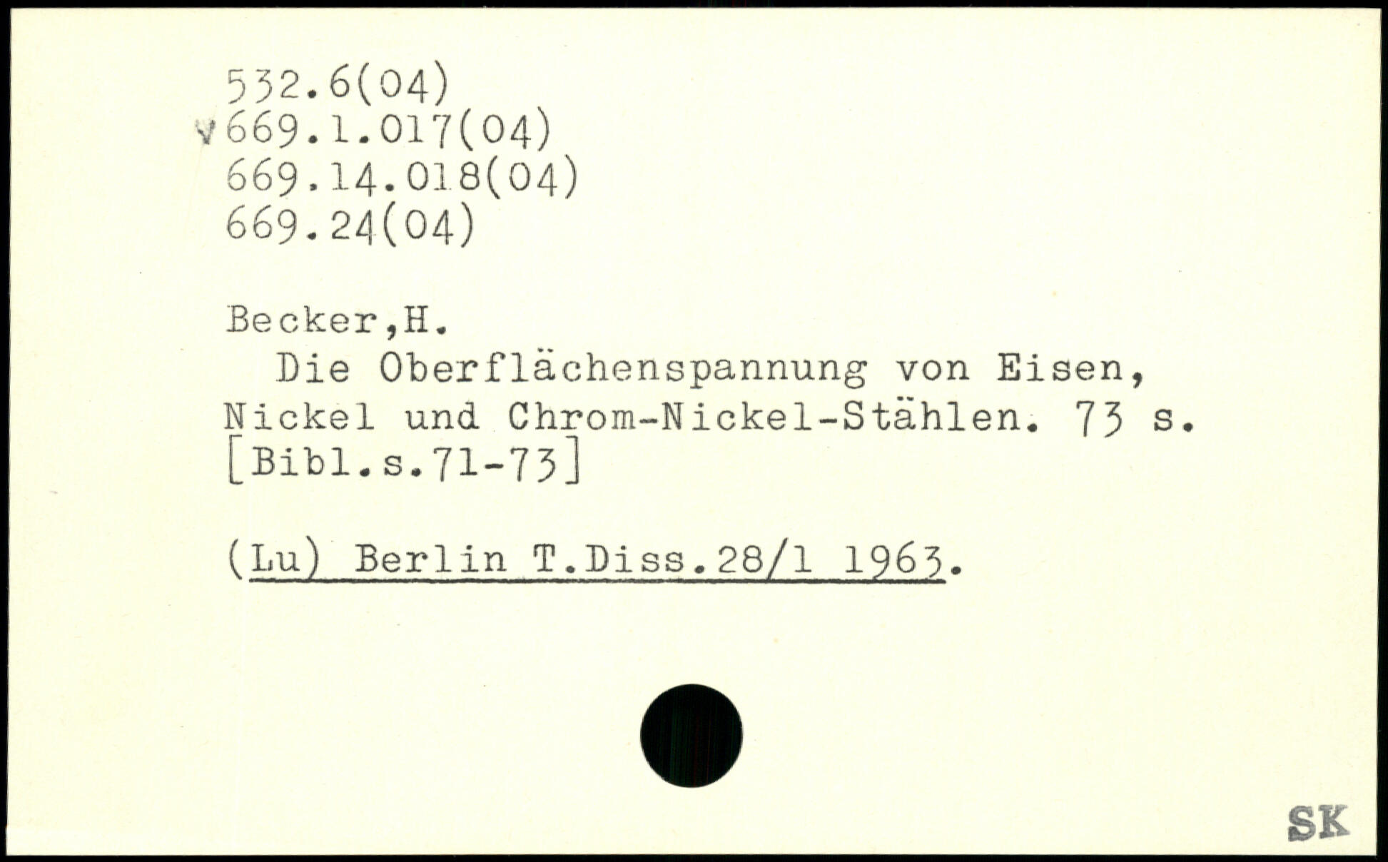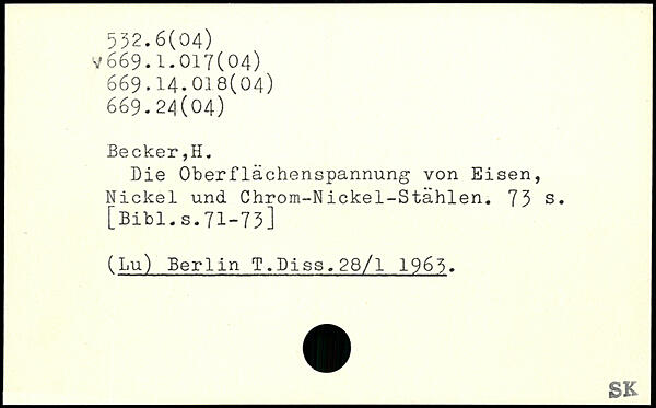 Die Oberflächenspannung von Eisen, Nickel und Chrom-Nickel-Stählen.