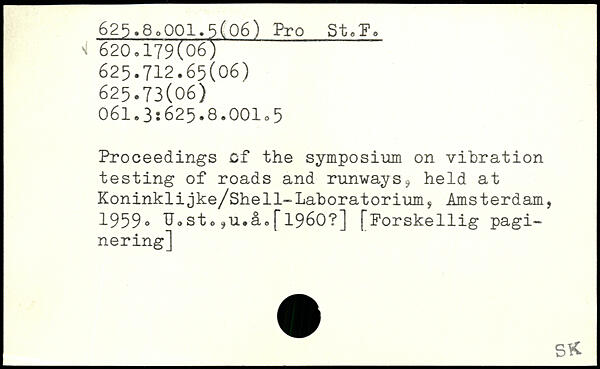 Proceedings cf the symposium on vibration testing of roads and runways9 held at Koninklijke/She11-