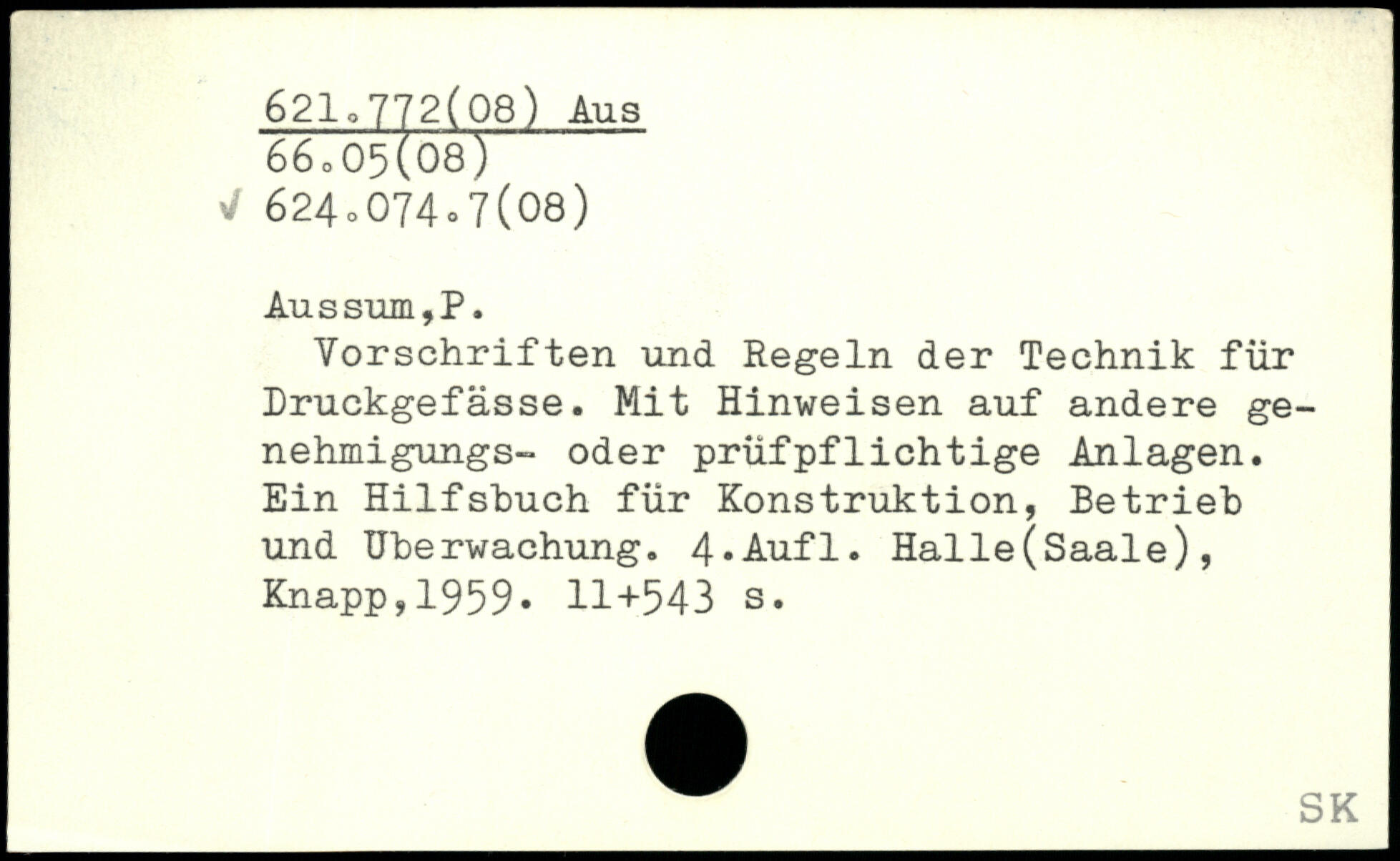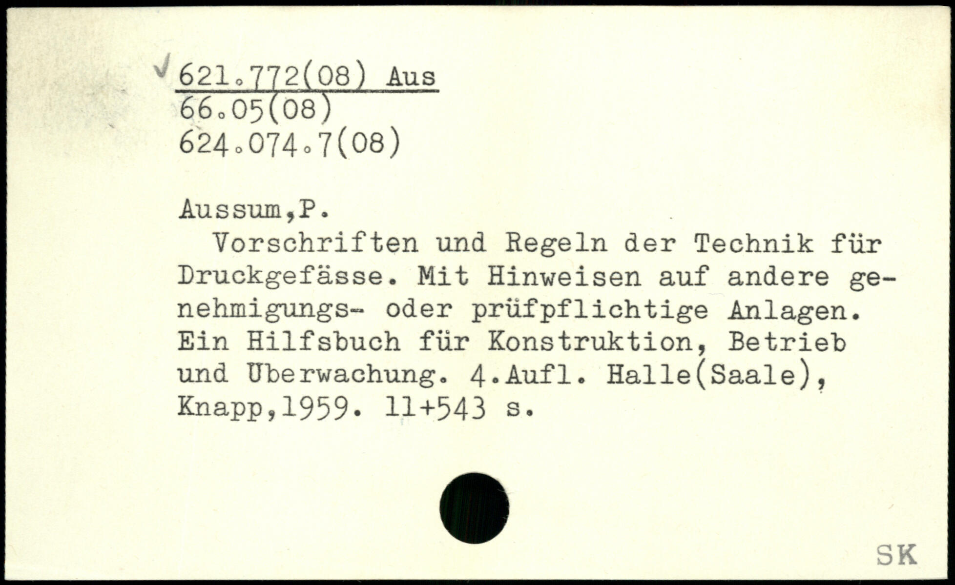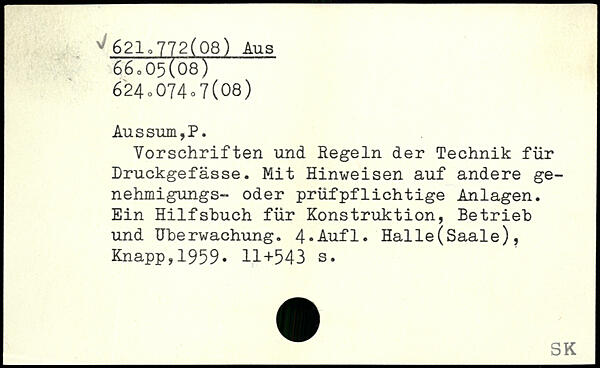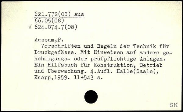 Vorschriften und Regeln der Technik für Druckgefässe. Mit Hinweisen auf andere ge-nehmigungs- oder prüfpflichtige Anlagen. Ein Hilfshuch für Konstruktion, Betrieb und Überwachung.