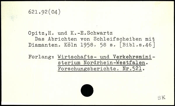 Opitz,Ho und K.-E,Schwartz Das Abrichten von Schleifscheiben mit Diamanten