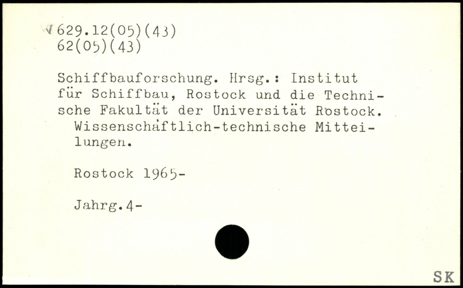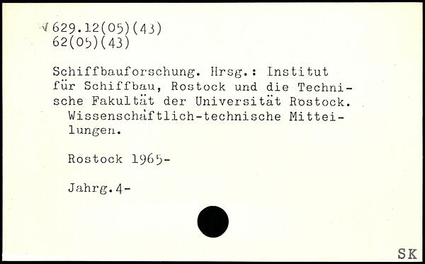 Schiffbauforschung. Hrsg.: Institut für Schiffbau, Rostock und die Technische Fakultät der Universität Rostock. Wissenschaftlich-technische Mitteilungen. Rostock 1965- Jahrg.4-